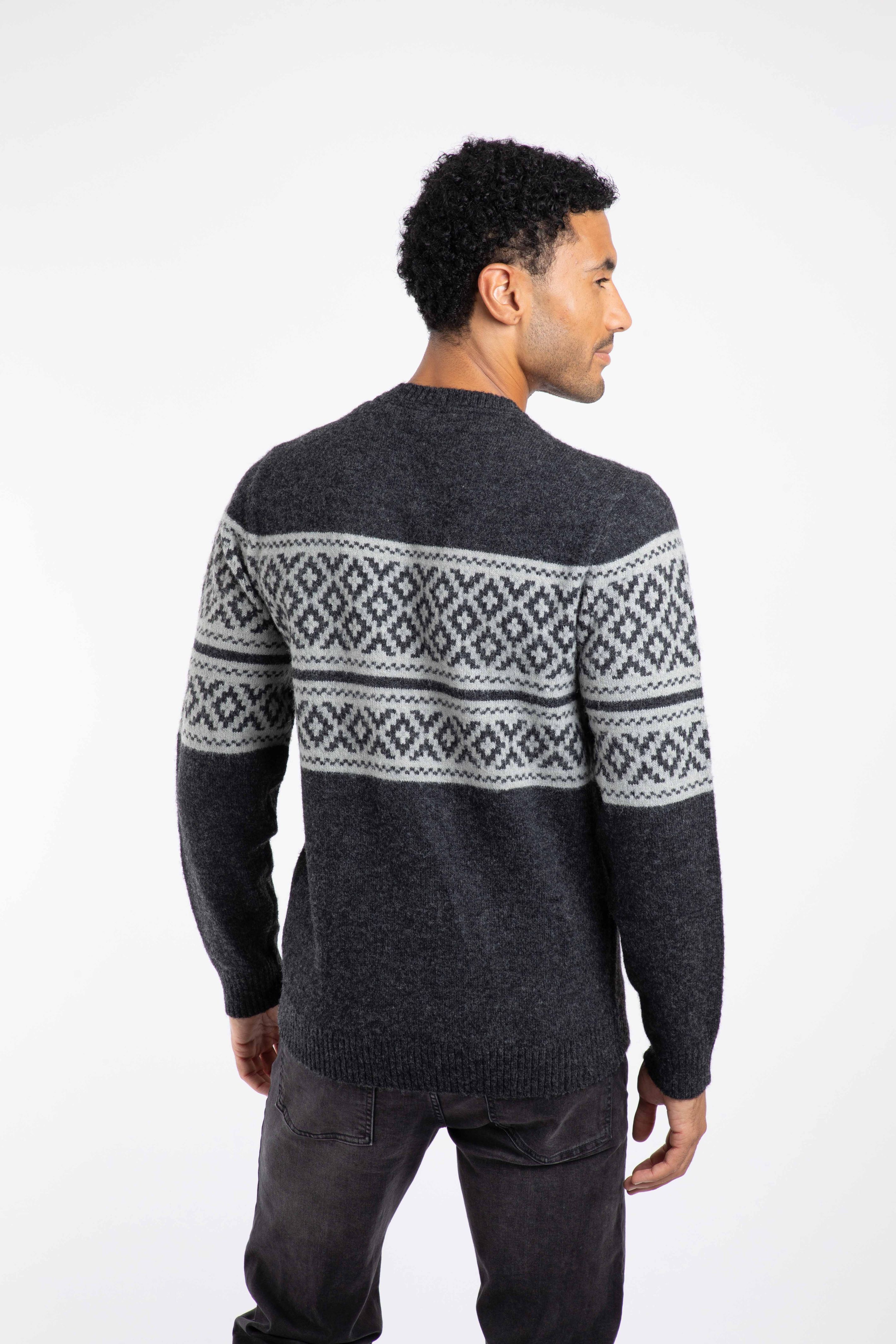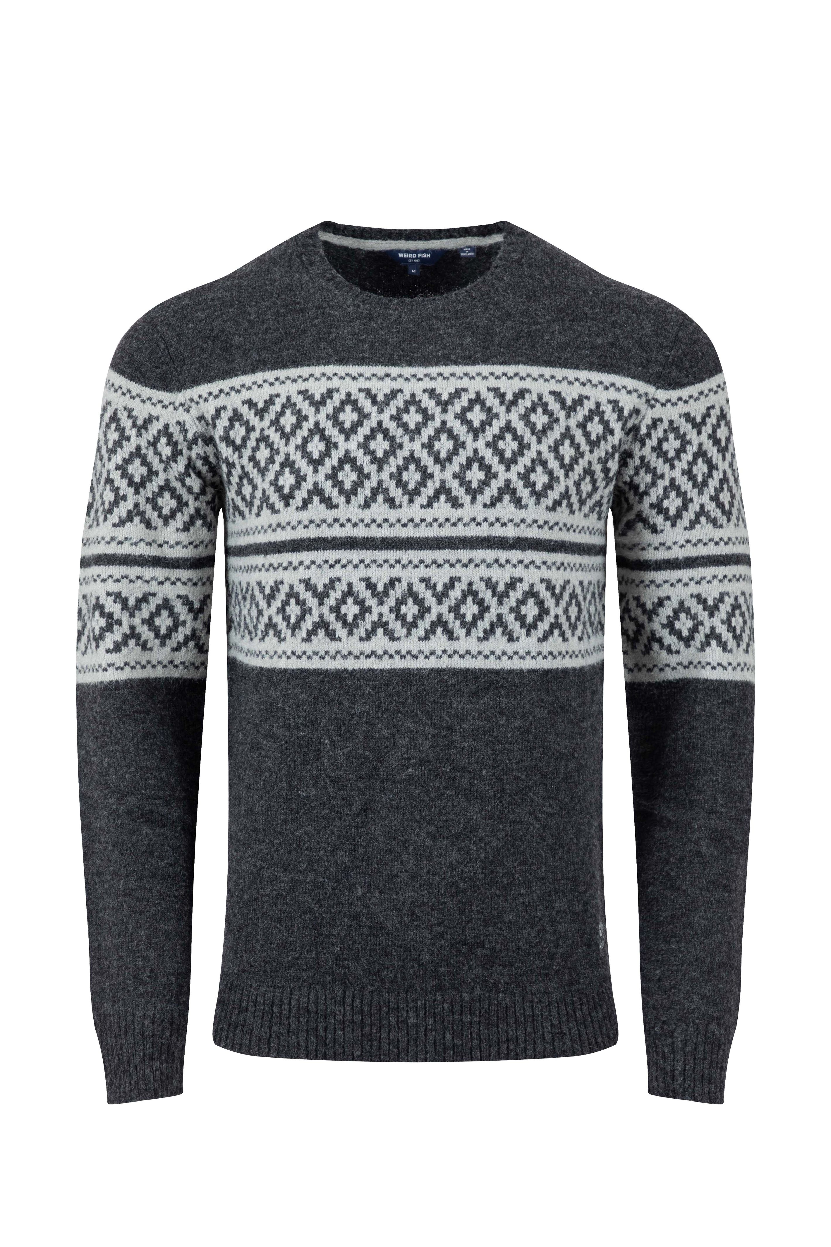 Our Wicklow Fair Isle Crew Neck Jumper is super warm and easy to wear, just throw it over your favourite T-Shirt. We have added a tonal knitted design across the chest and arms, and added a ribbed neck, cuffs and hem for a great fit.