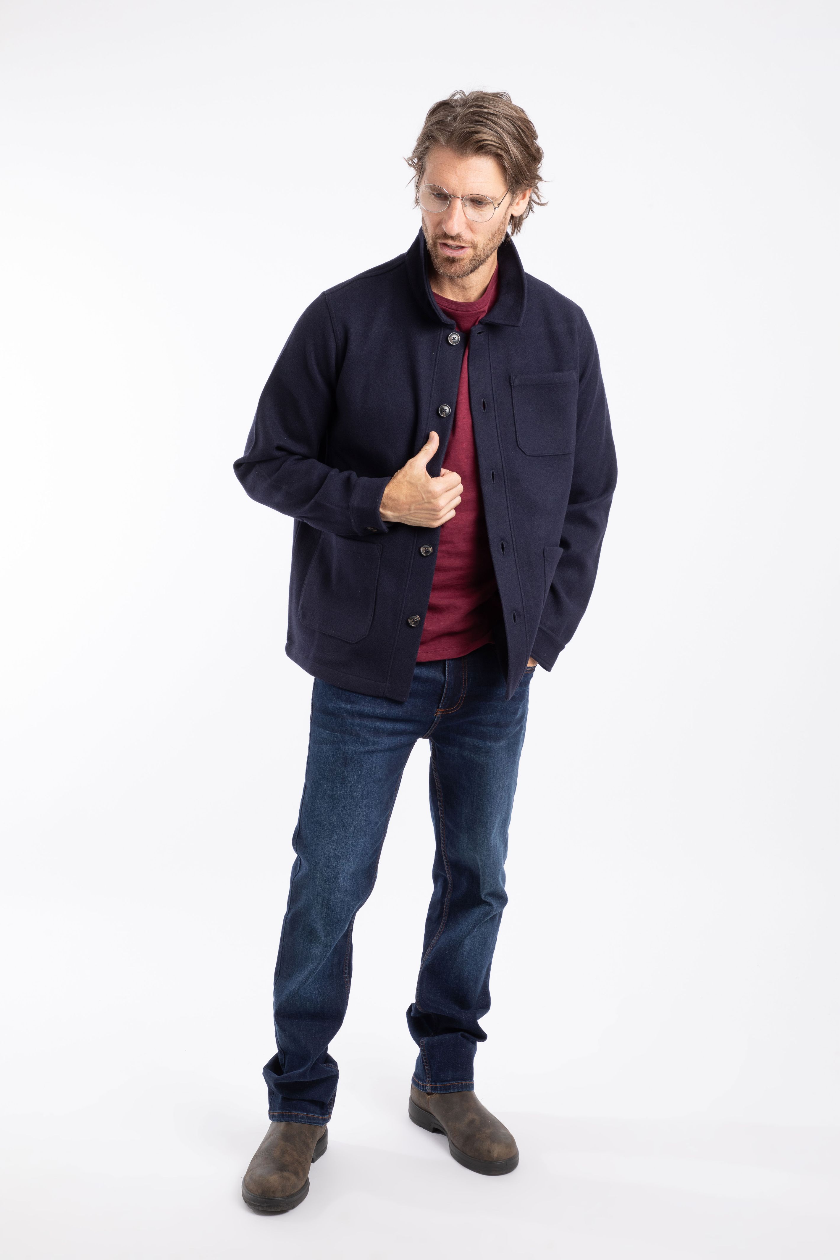 The Coburn Chore Over Shirt Shacket is a great choice to wear as an autumn jacket. It's thick and warm, almost wool-style material helps to lock in the warmth. The chore workwear jacket styling works well with T-Shirts, shirts or polos, and you can't go wrong with a classic navy.