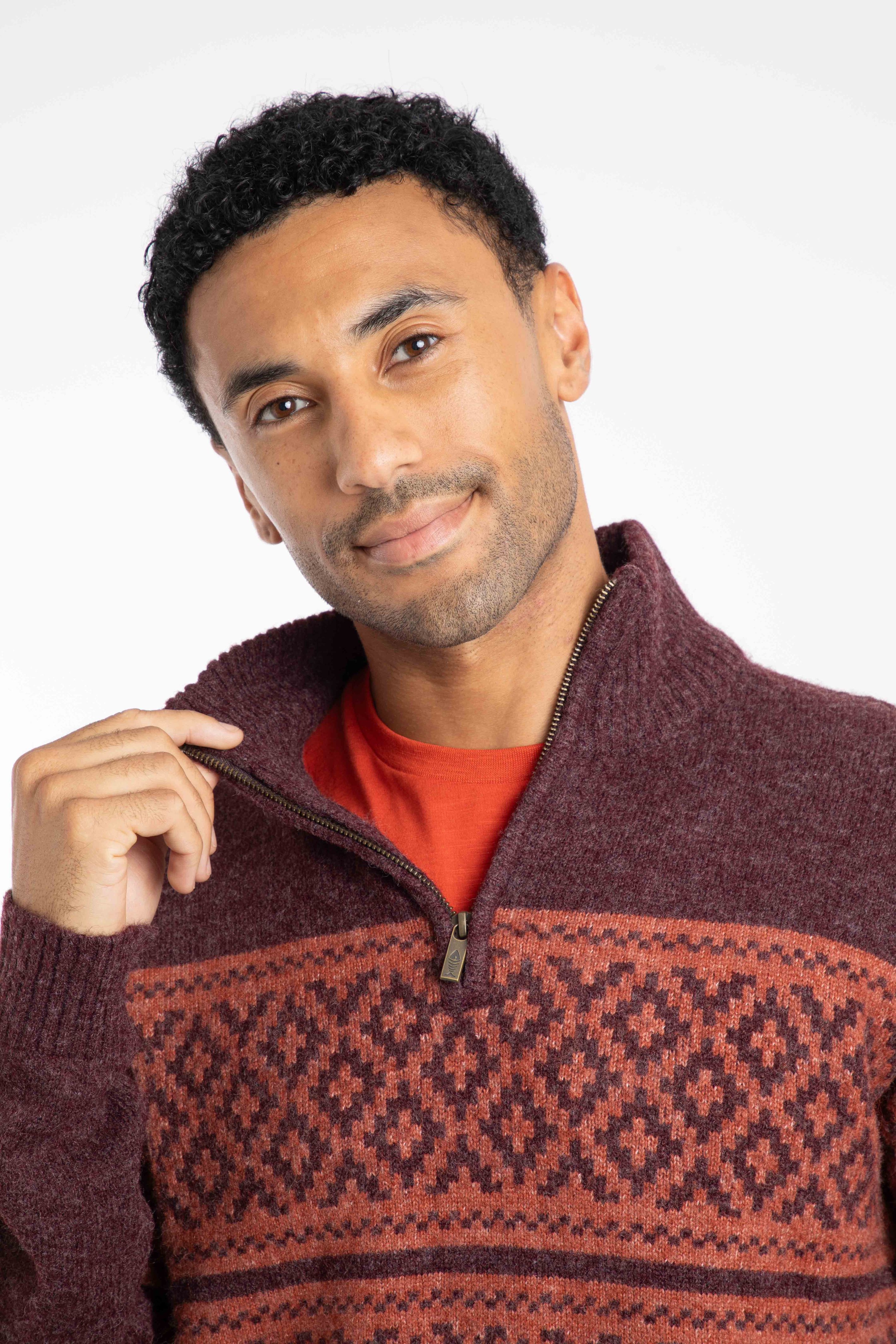 Kilnworth 1/4 Zip Fair Isle Jumper Mulled Wine