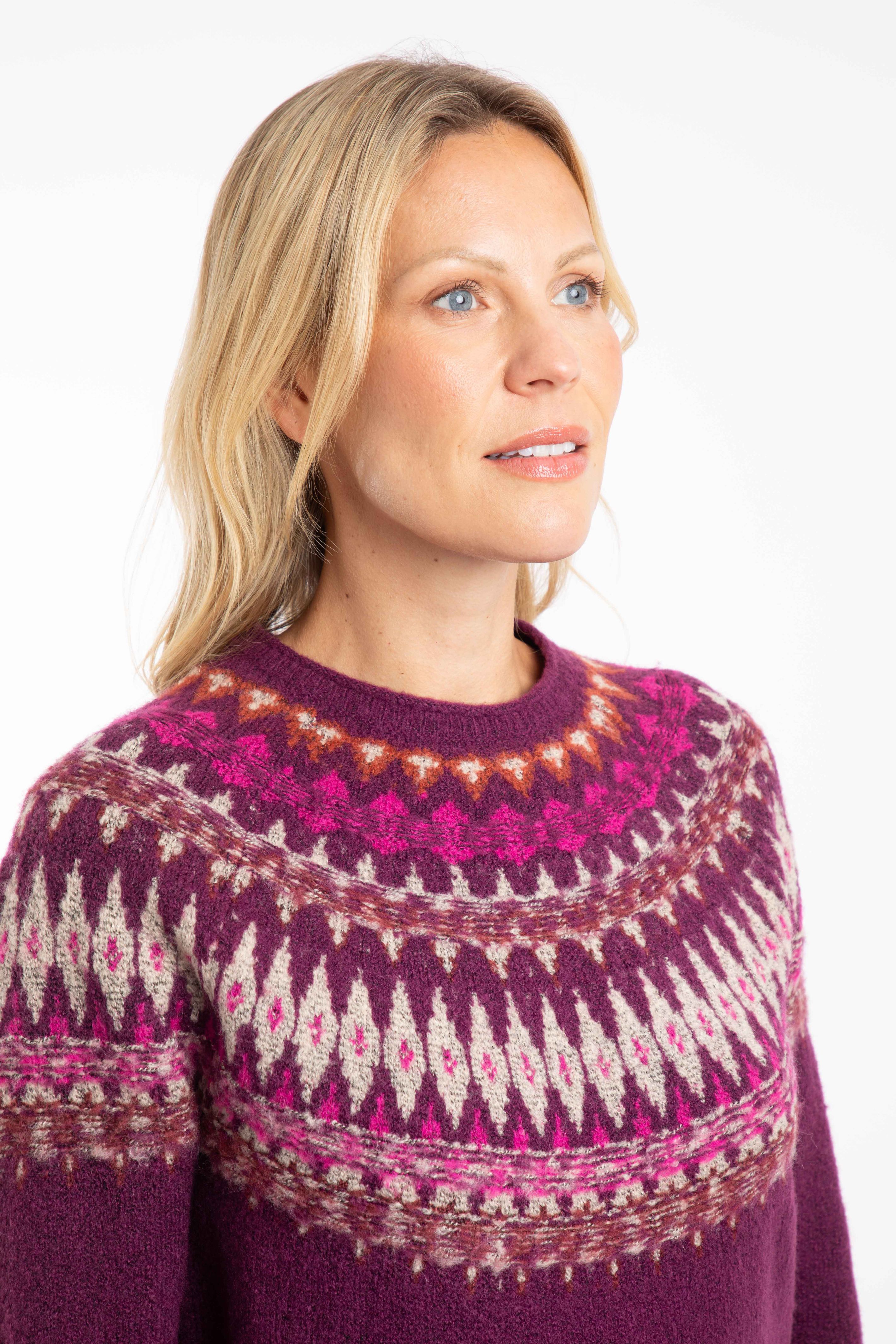 Our delightful Lowell Fair Isle Jumper is inspired by our time in Norway, featuring a Scandinavian knitting design. Thanks to its acrylic and polyester mix, it is soft to the touch and will keep you warm without overheating. Pair with jeans and boots for the perfect Autumn look.