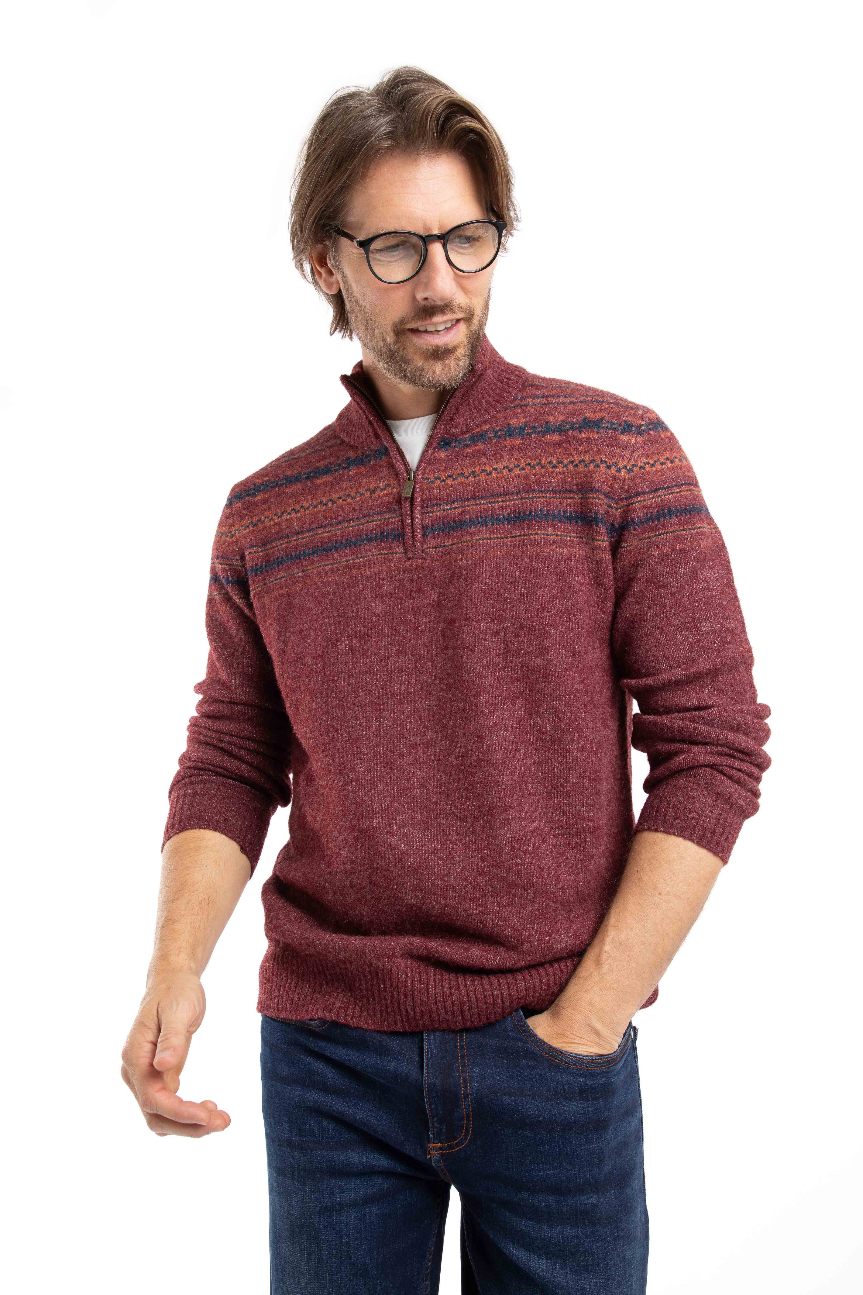 Larner 1/4 Zip Fair Isle Jumper Garnet