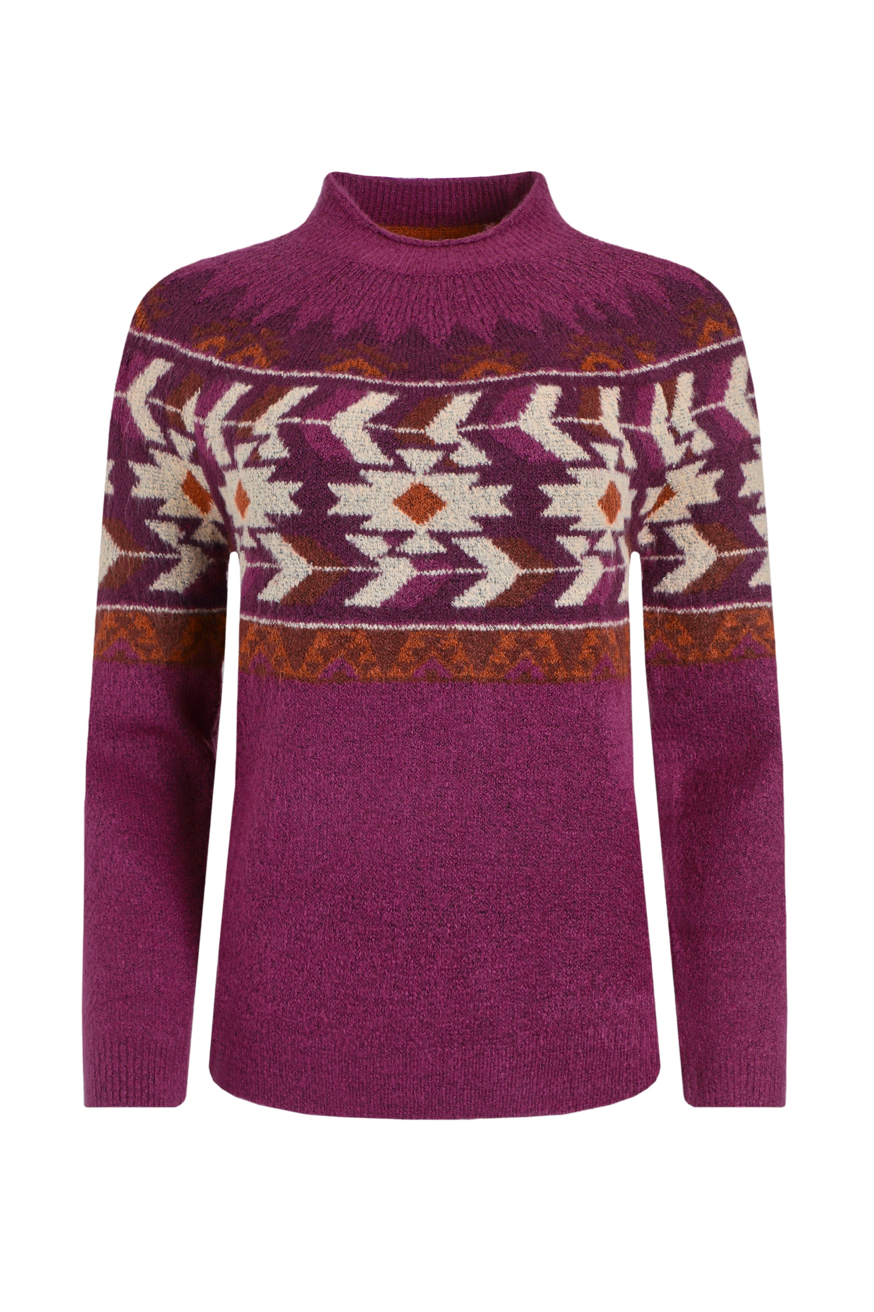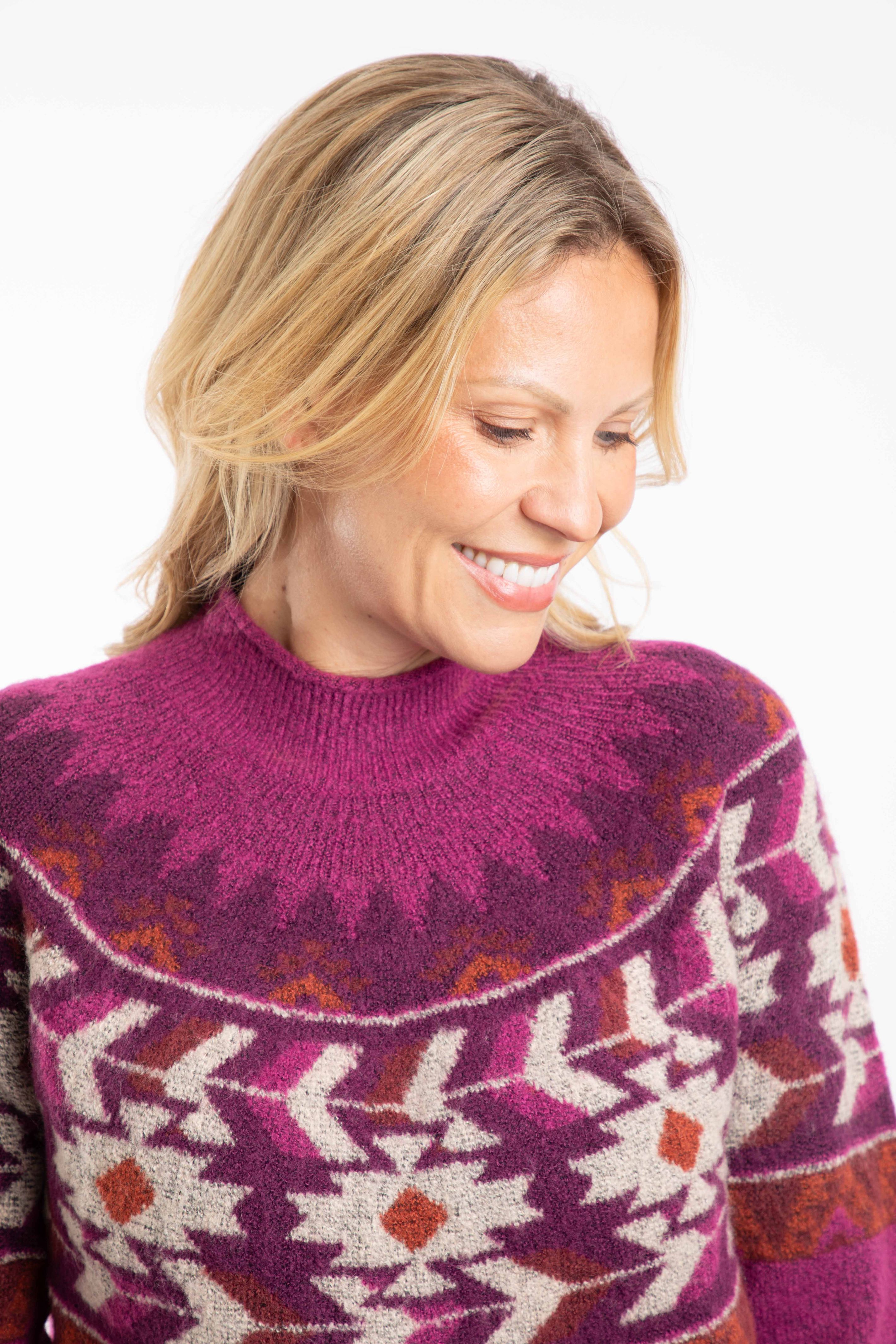 The Arelia Ikat Knitted Jumper is inspired by this dying technique's signature shapes, but instead of dying, we have woven this design into this gorgeous, Scandi-feel jumper. We have made the neck a little higher, for extra warmth and used a mix of materials for comfort and fit.