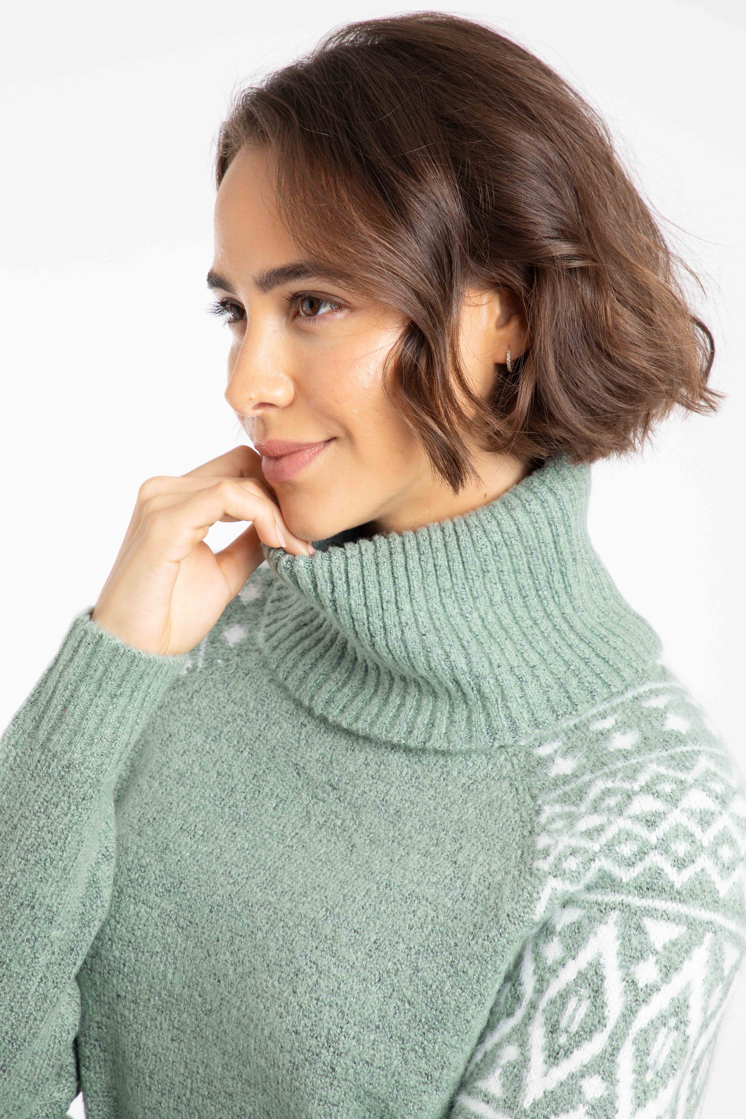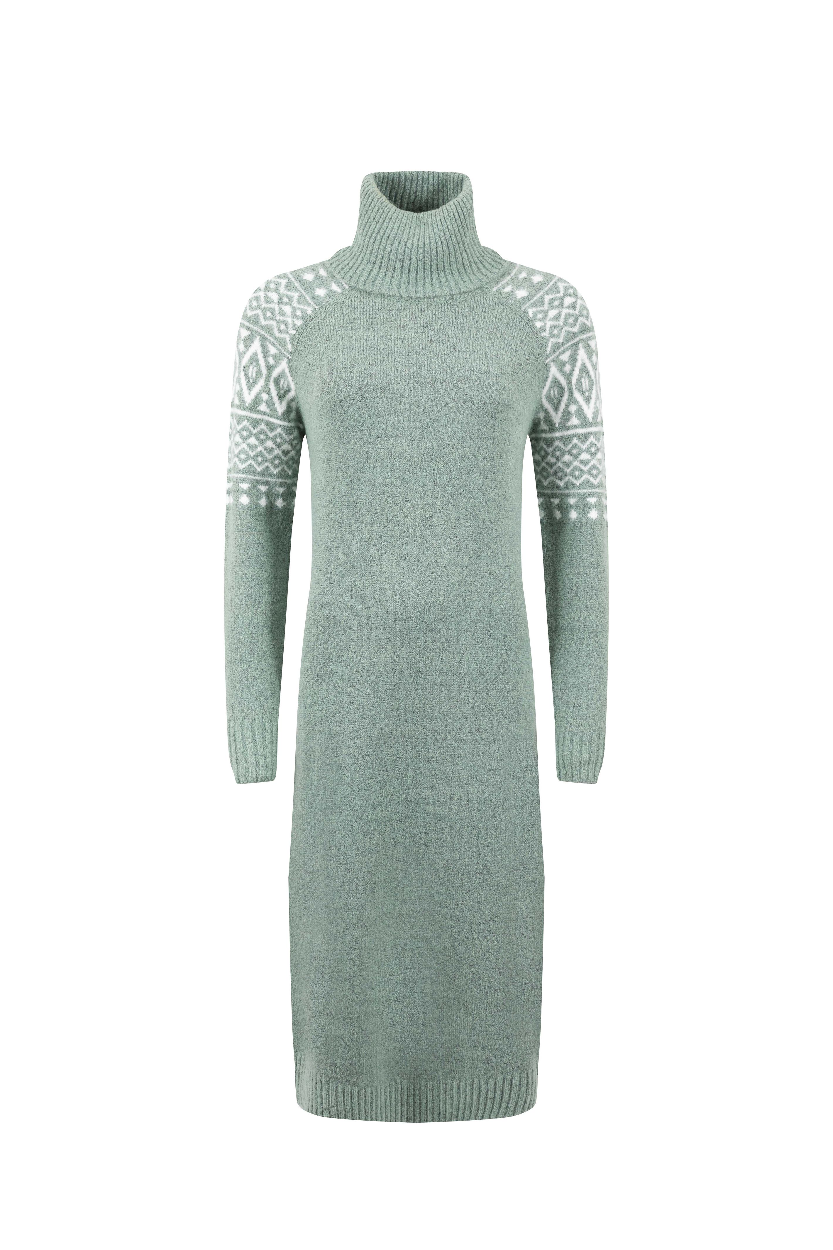 Ezzie Fair Isle Roll Neck Knitted Dress Frosty Spruce