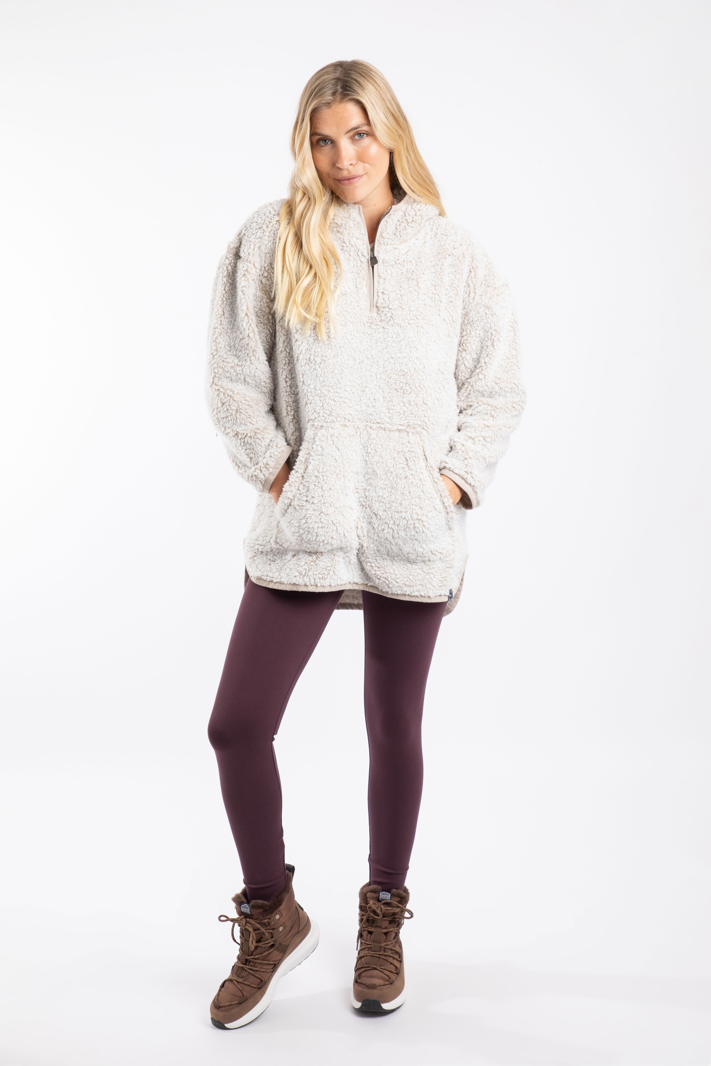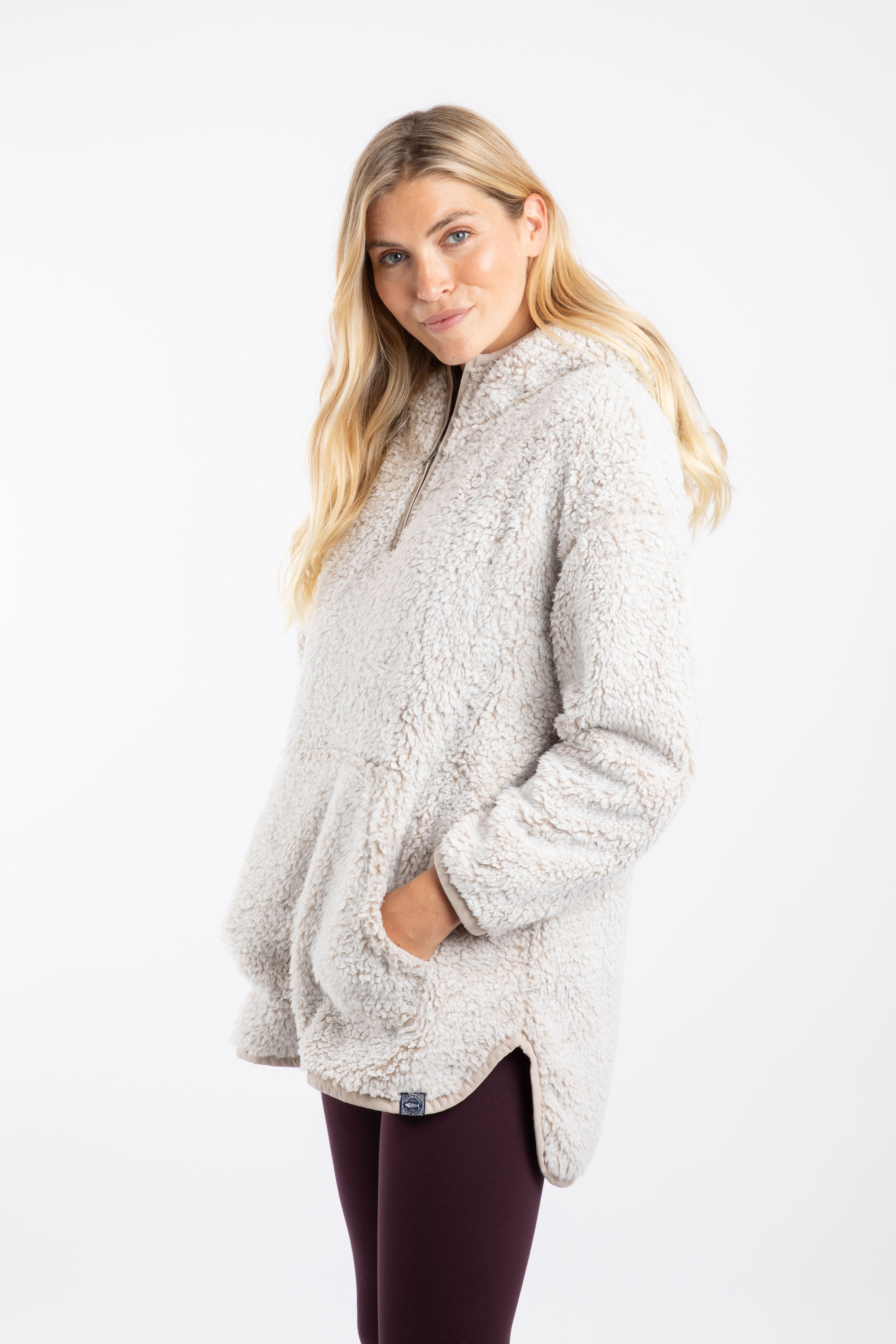 Our cosy fleece fabric is possibly the softest material you have ever met, and the Faye Cosy Longline Fleece Hoodie has tons of it. This over-sized design is so easy to slip on over any outfit for that extra layer of warmth, with a long drop-tail hem, and a large kangaroo pocket. We love this over leggings for hiking or camping, or team with your favourite loungewear for those lazy sofa days. This cosy fleece material is so soft and comfy, you won’t want to take it off!
