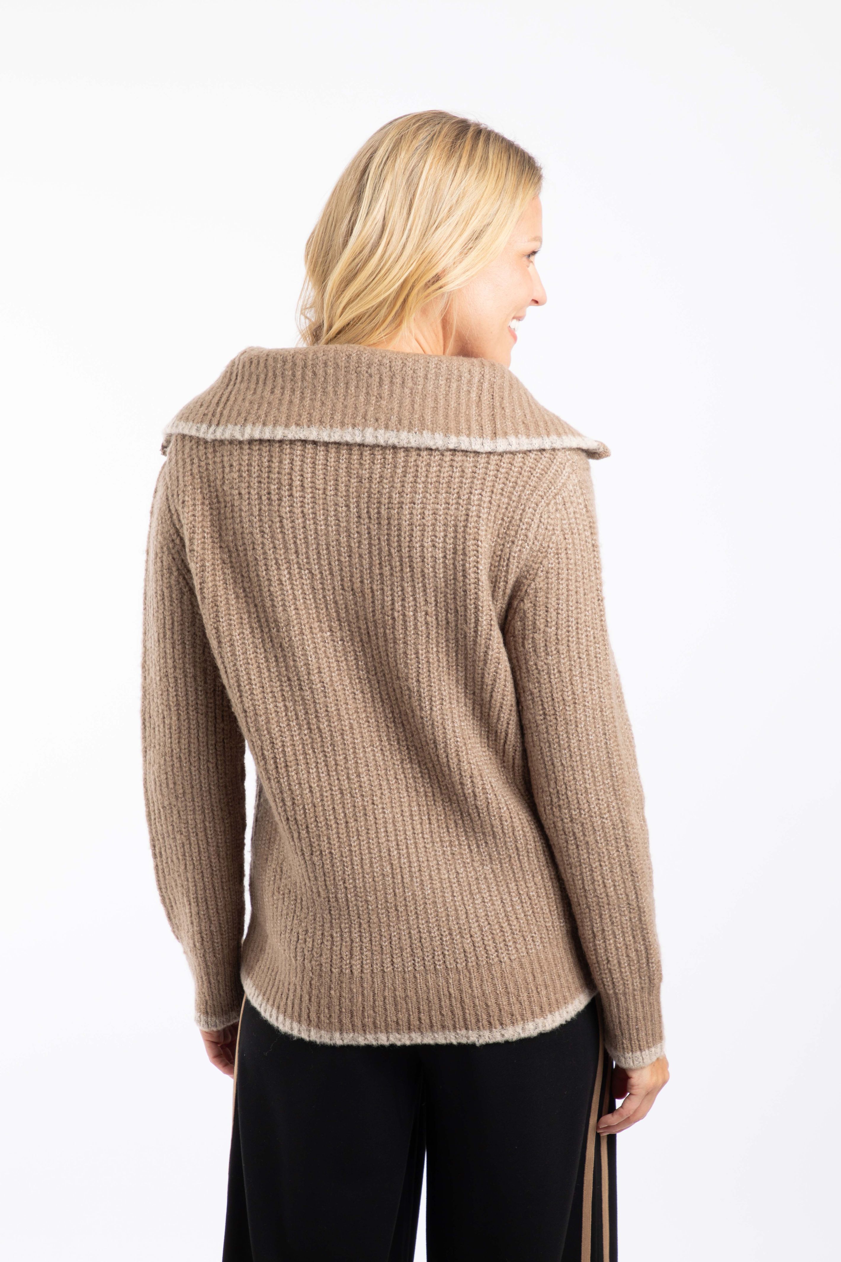 The Reza 1/4 Zip Knitted Jumper is a fun design for the season. We have given it a large collar that can be styled in a number of ways, with a mixture of different knitted stitches to add interest. This chunky knit jumper is really warm and looks great with denim.