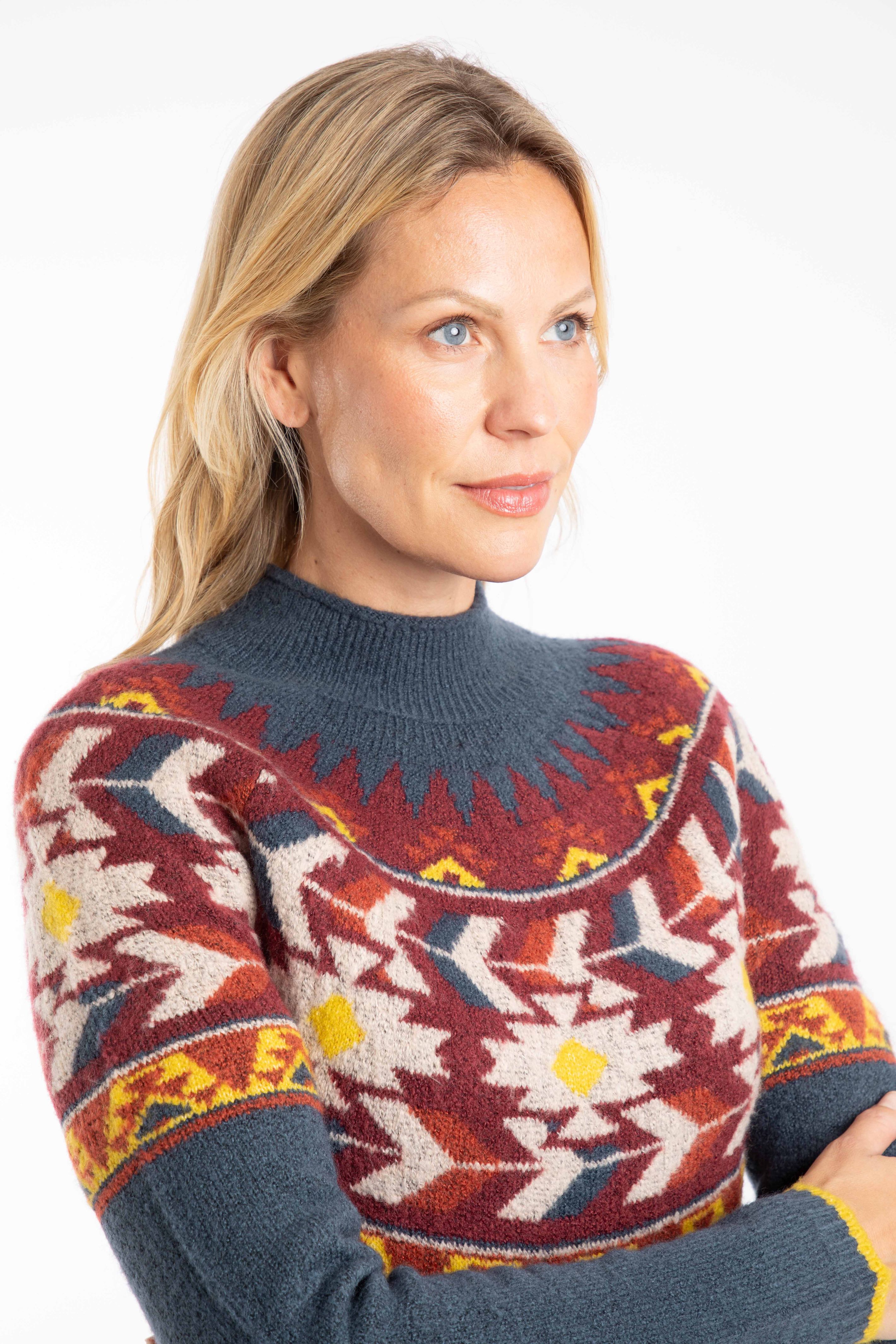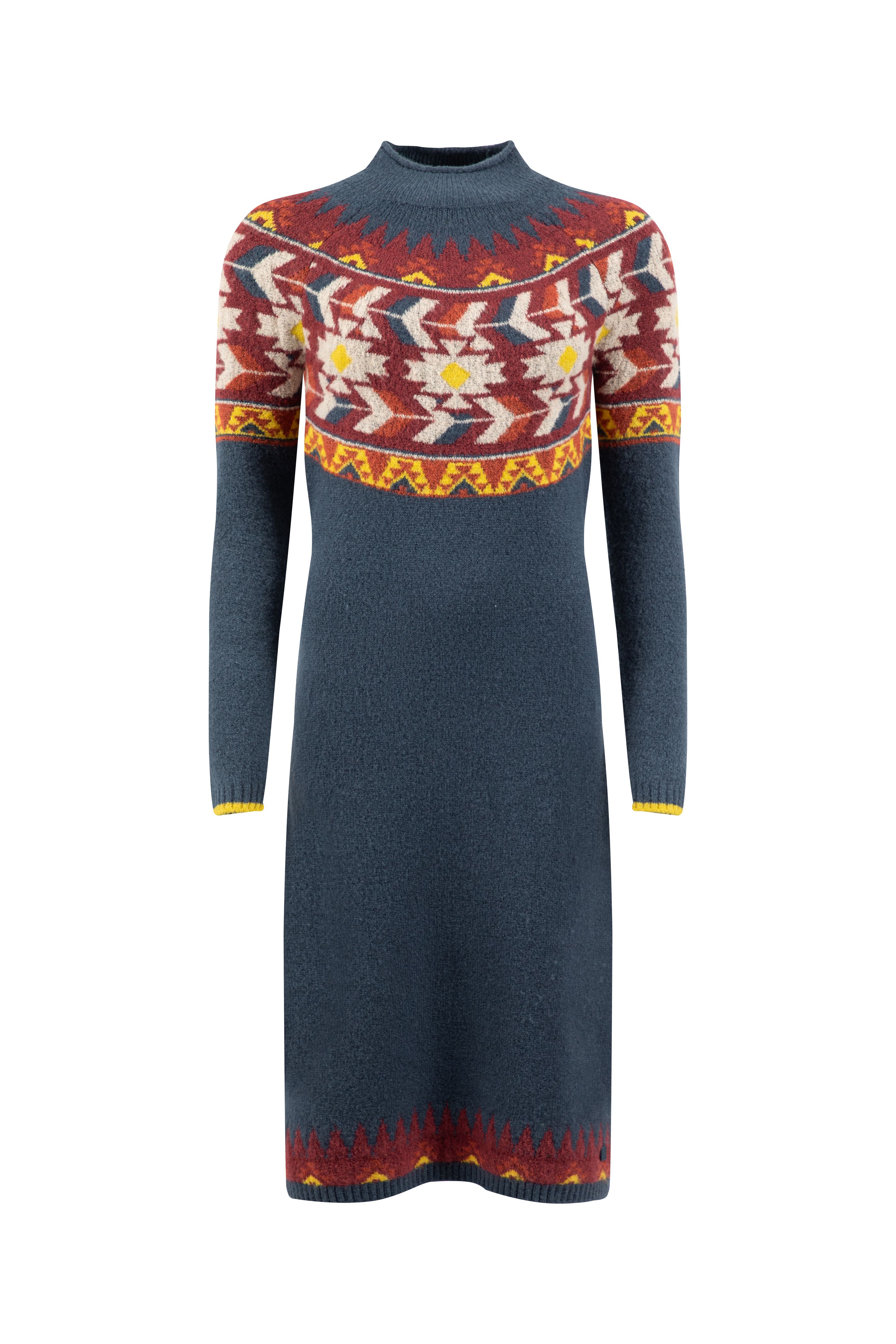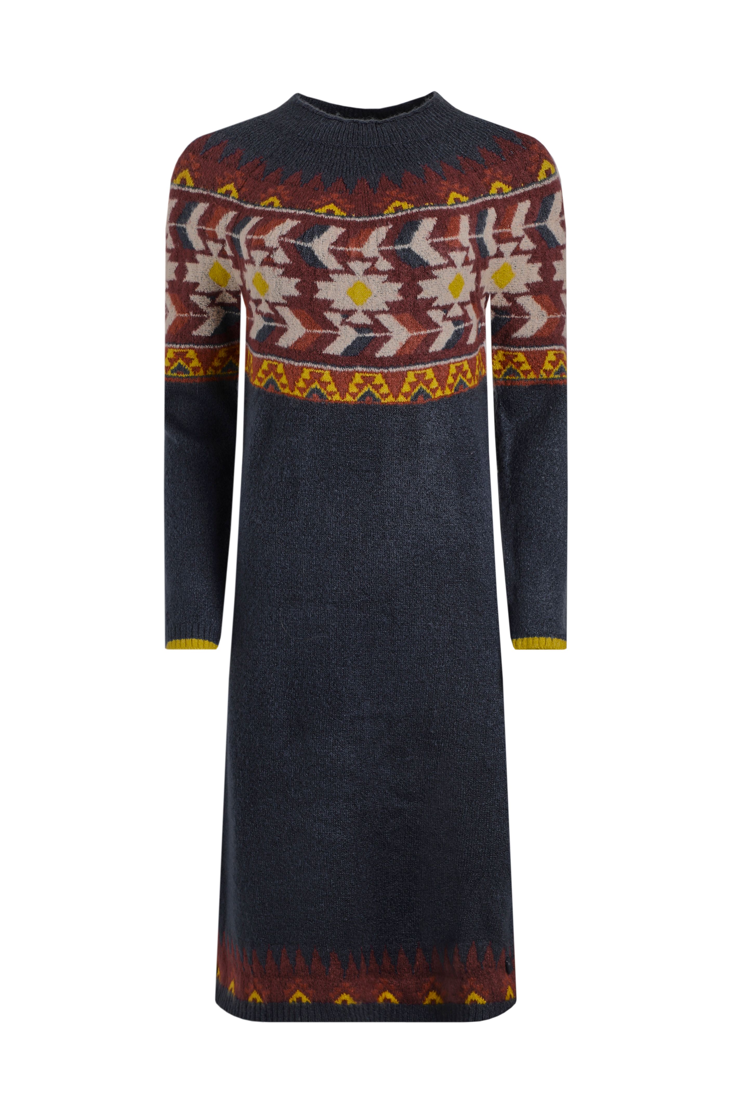 Knitted dresses are such a great option for the season, and the Vondra Knitted Jumper Dress is a gorgeous example. Like our Arelia Ikat Knitted Jumper, its design is inspired by the Ikat dying technique's signature shapes, but instead of dying, we have woven this design into this gorgeous, Scandi-feel knitted dress.