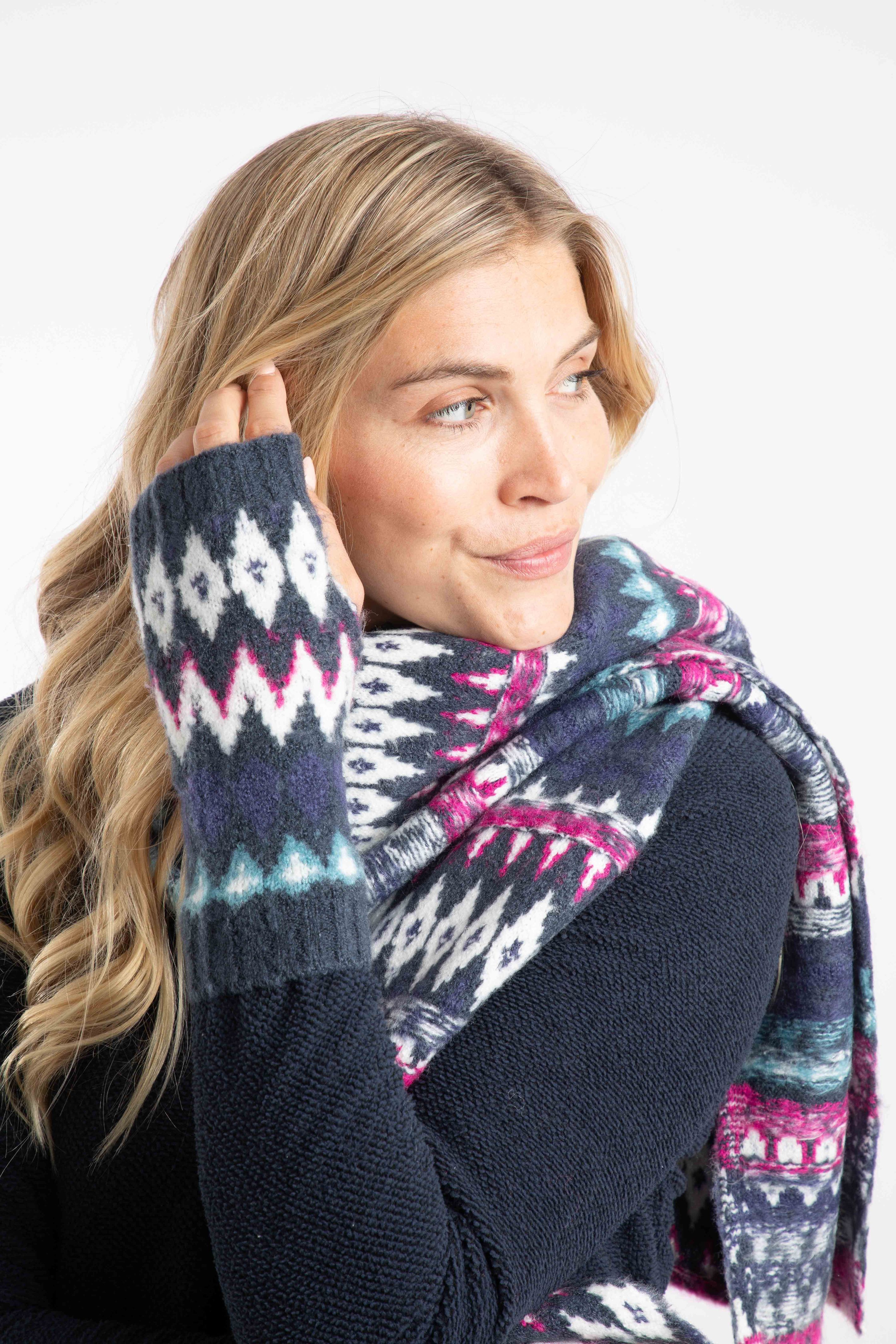 The warmth of a glove but with more freedom for your fingers. The Shutt Fair Isle Wrist Warmers are fun and cosy, match them with our Heathfield scarf for a full Fair Isle fest!