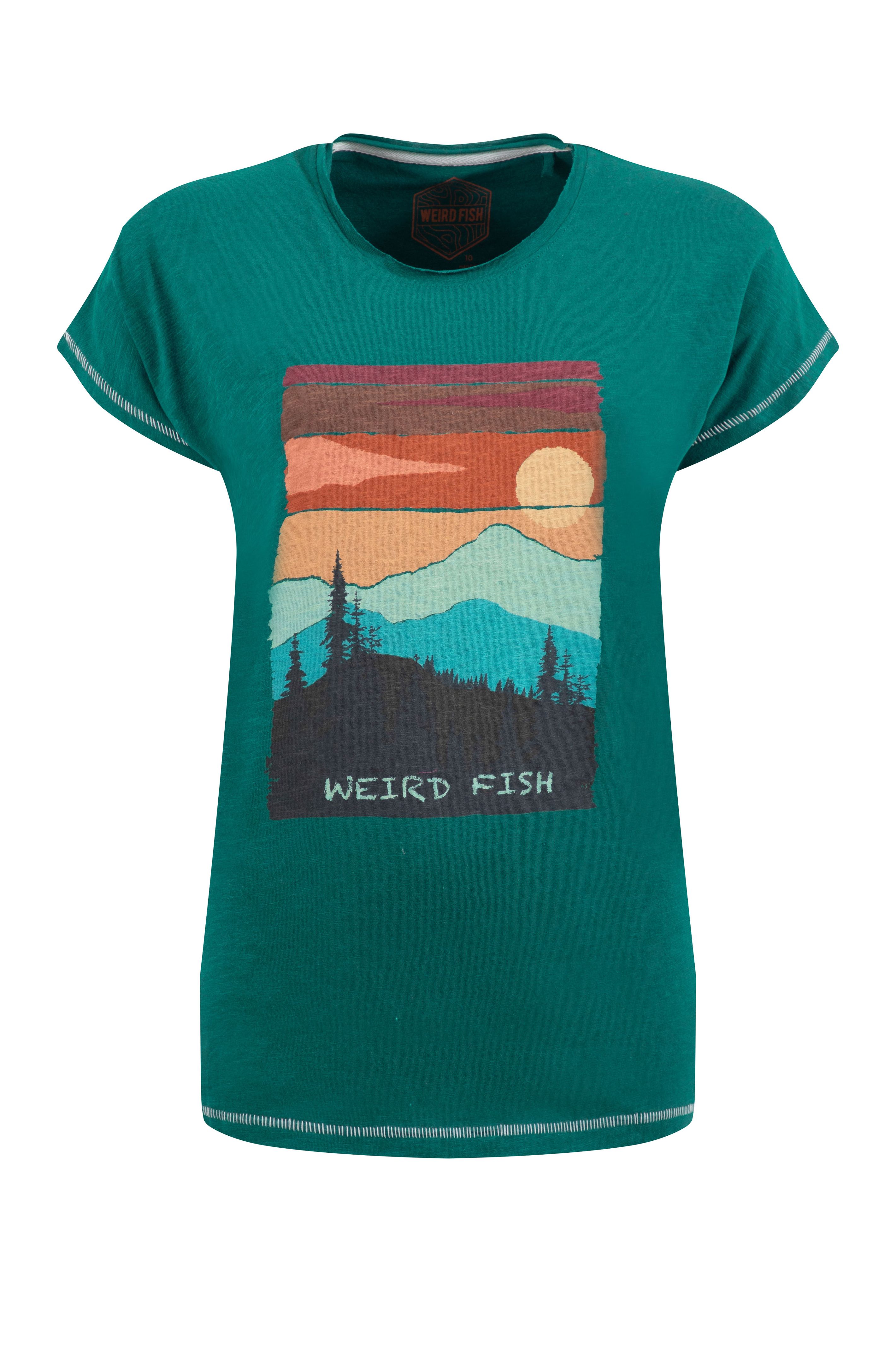 Our Woodlands Front Print Graphic T-Shirt was inspired by an evening walk in the countryside, with the sun setting behind the trees, one of our happy places, outside of the beach. This relaxed fit tee has a large chest print and a raw edge neckline for a casual feel.