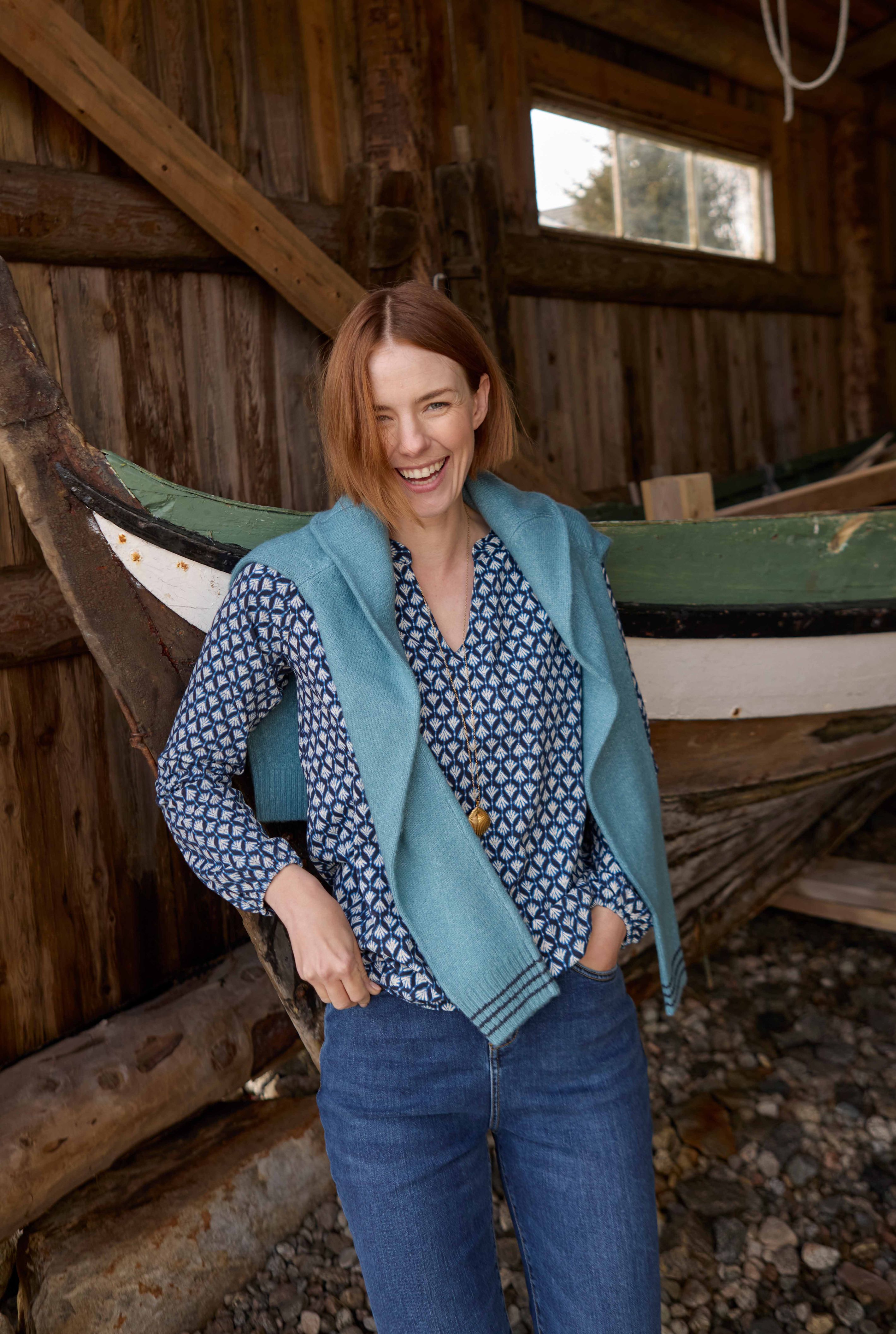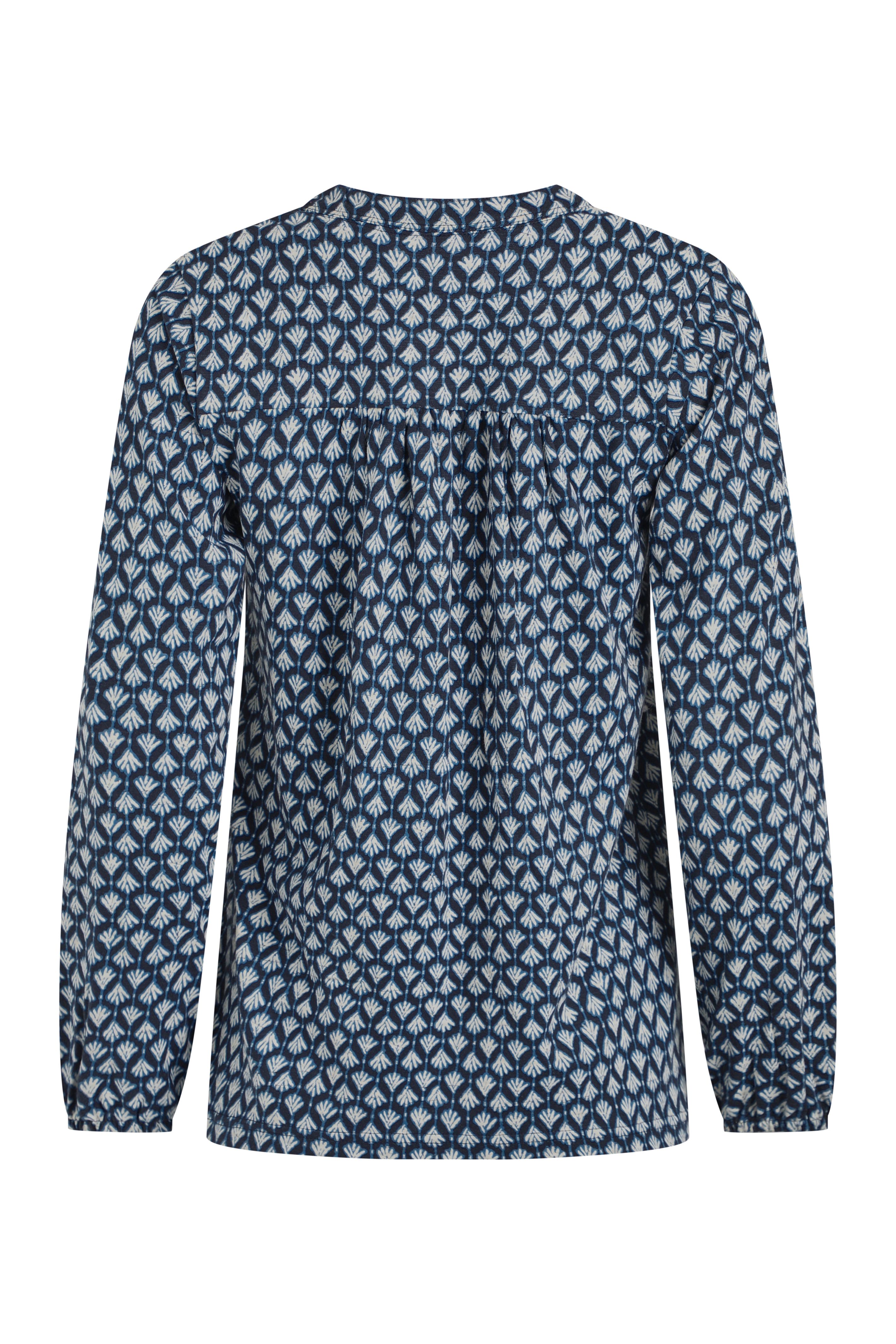 Brooke Organic Cotton Printed V Neck Jersey Top Indigo
