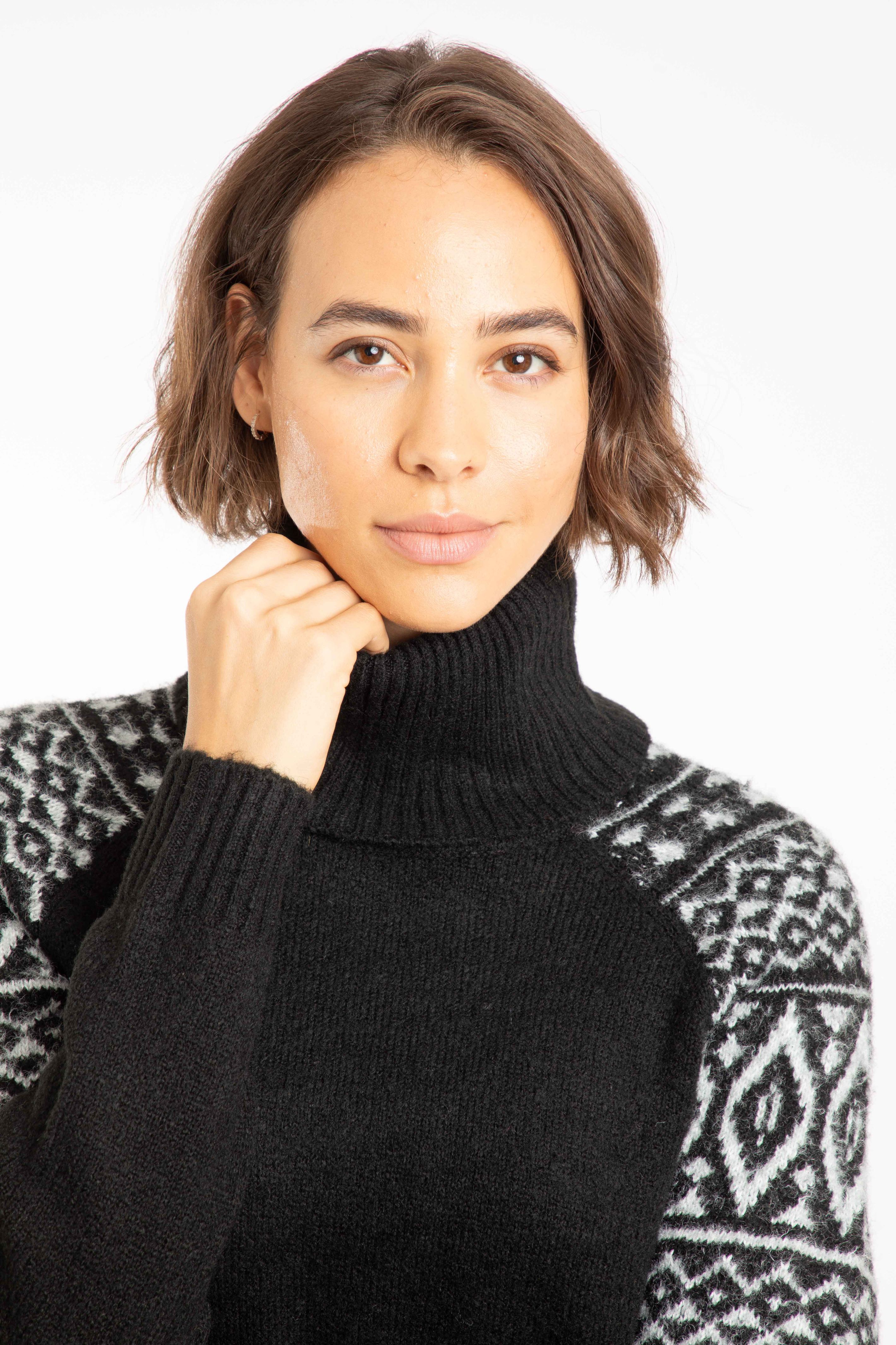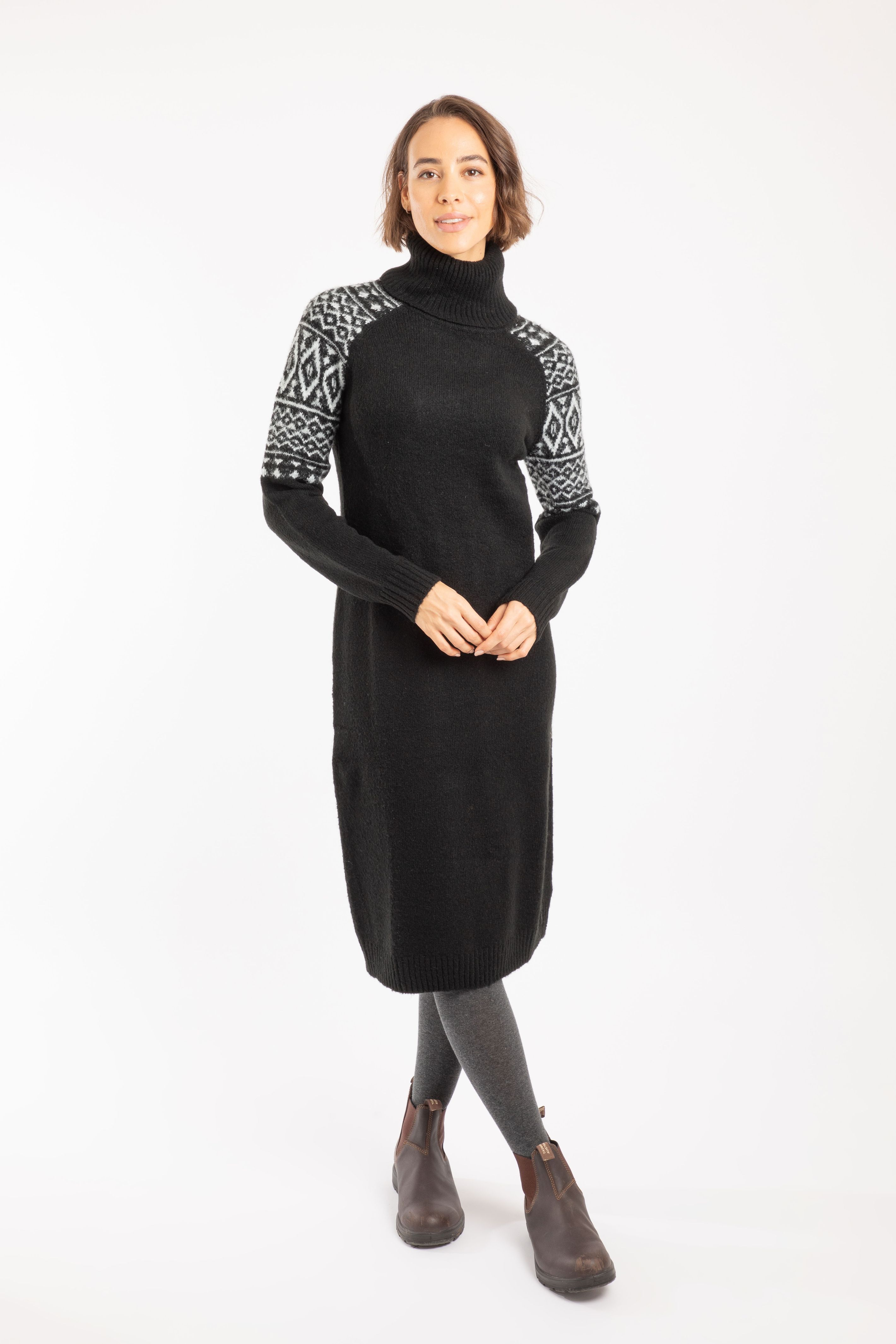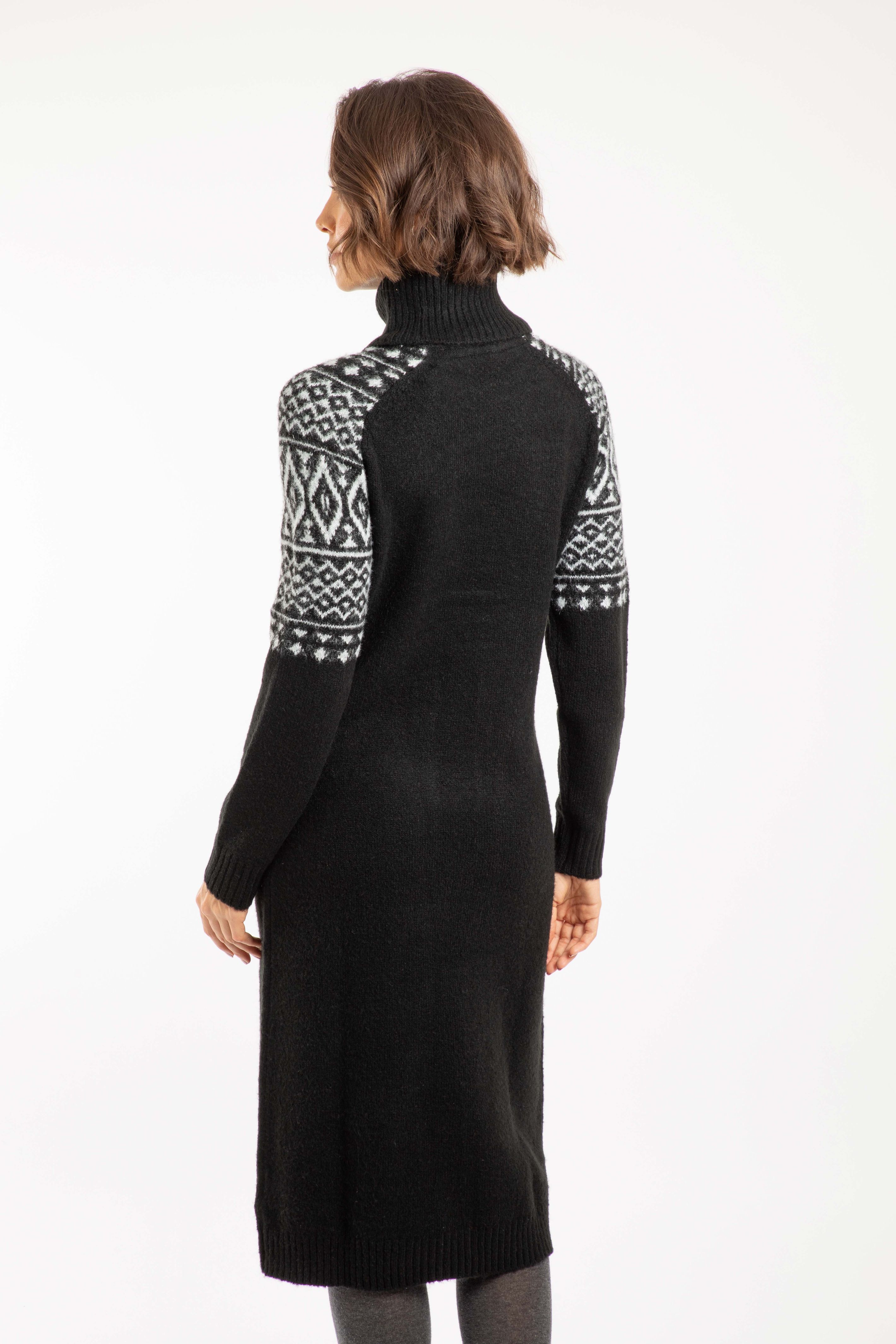 Ezzie Fair Isle Roll Neck Knitted Dress Black