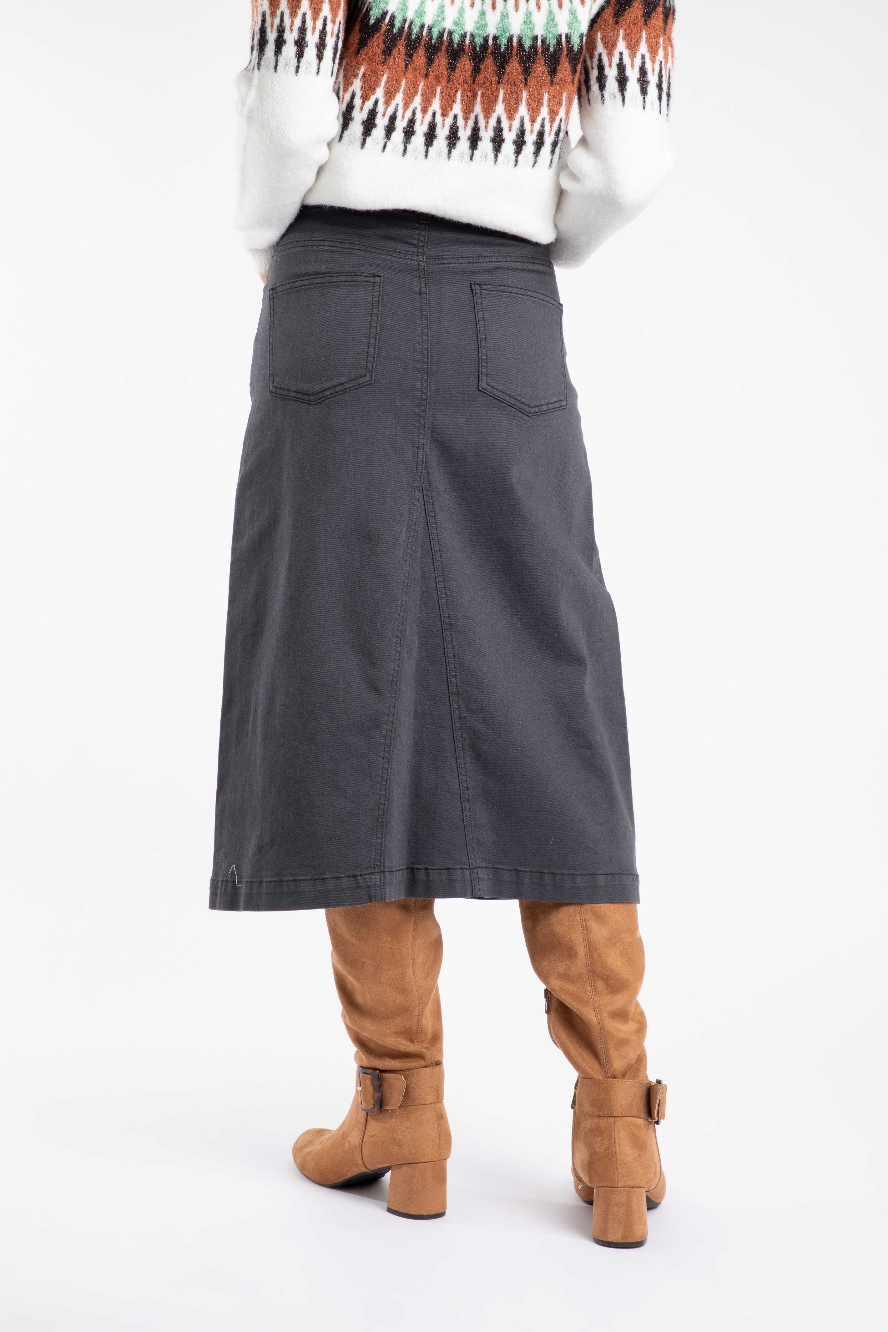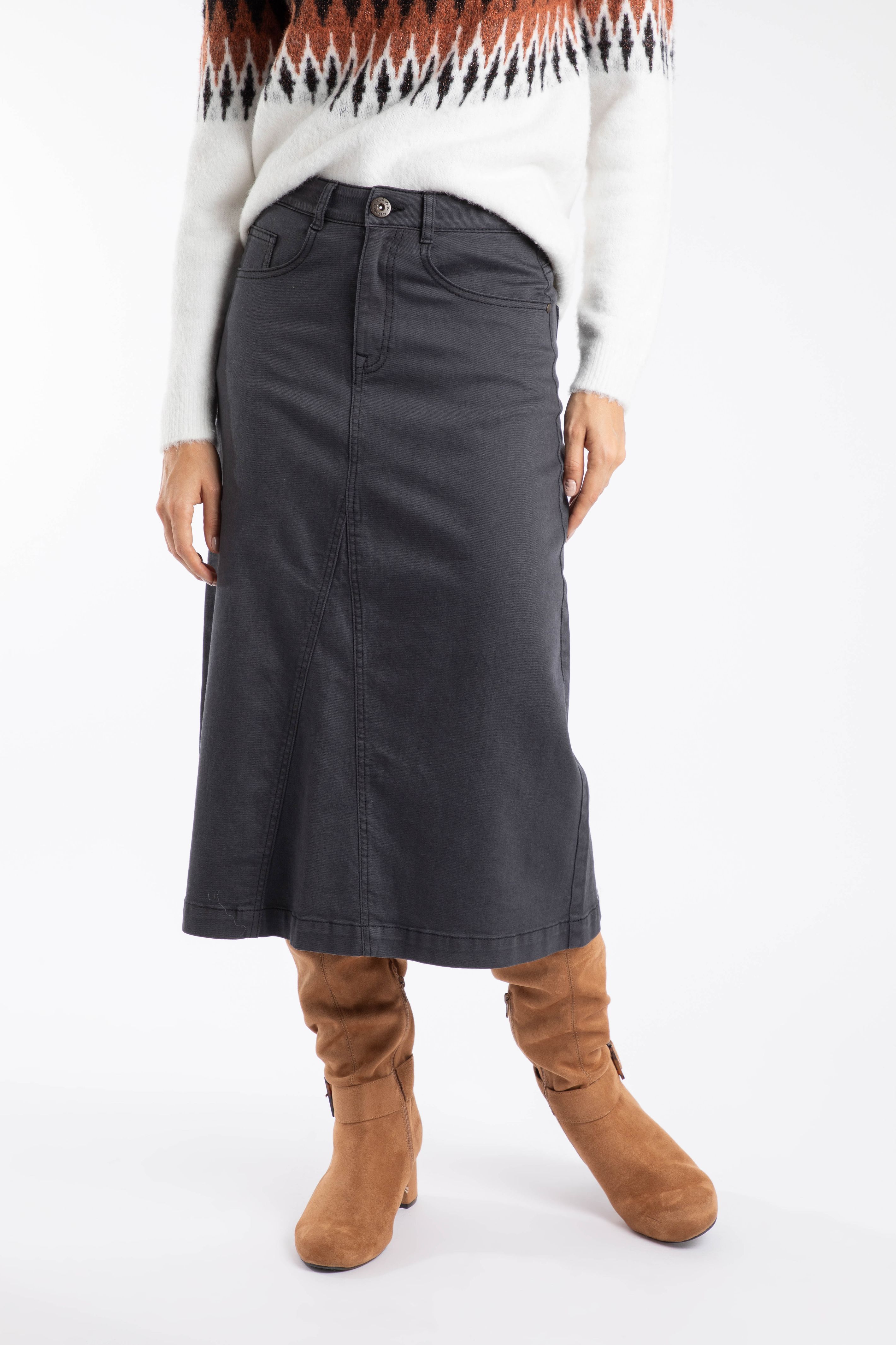 The Juda Longline Denim Skirt will go so well with plenty of different looks this season. Team with a T-Shirt for warmer days, or layer with a knit or jacket for cool evenings and early mornings. Looks great with trains or boots.