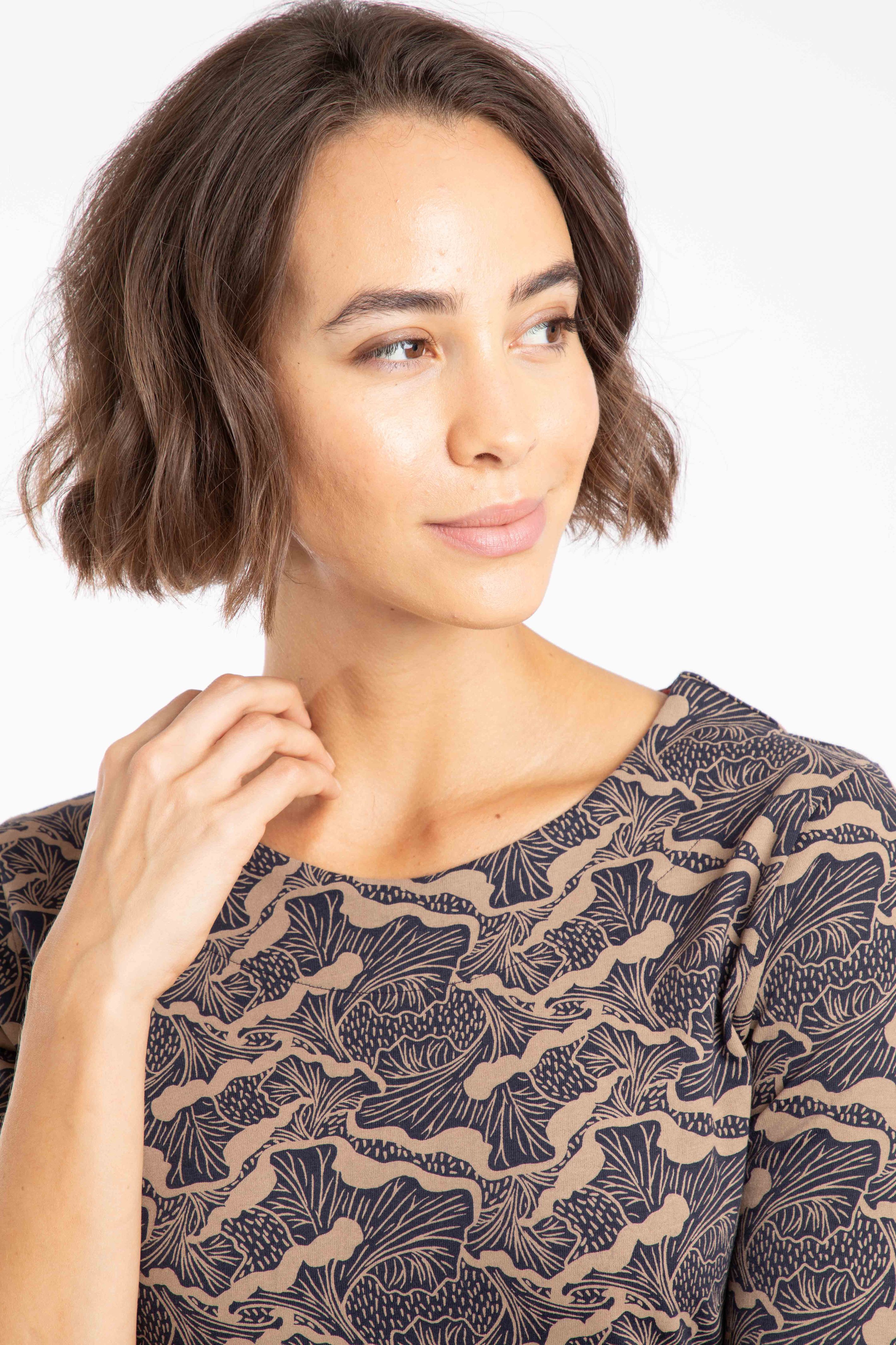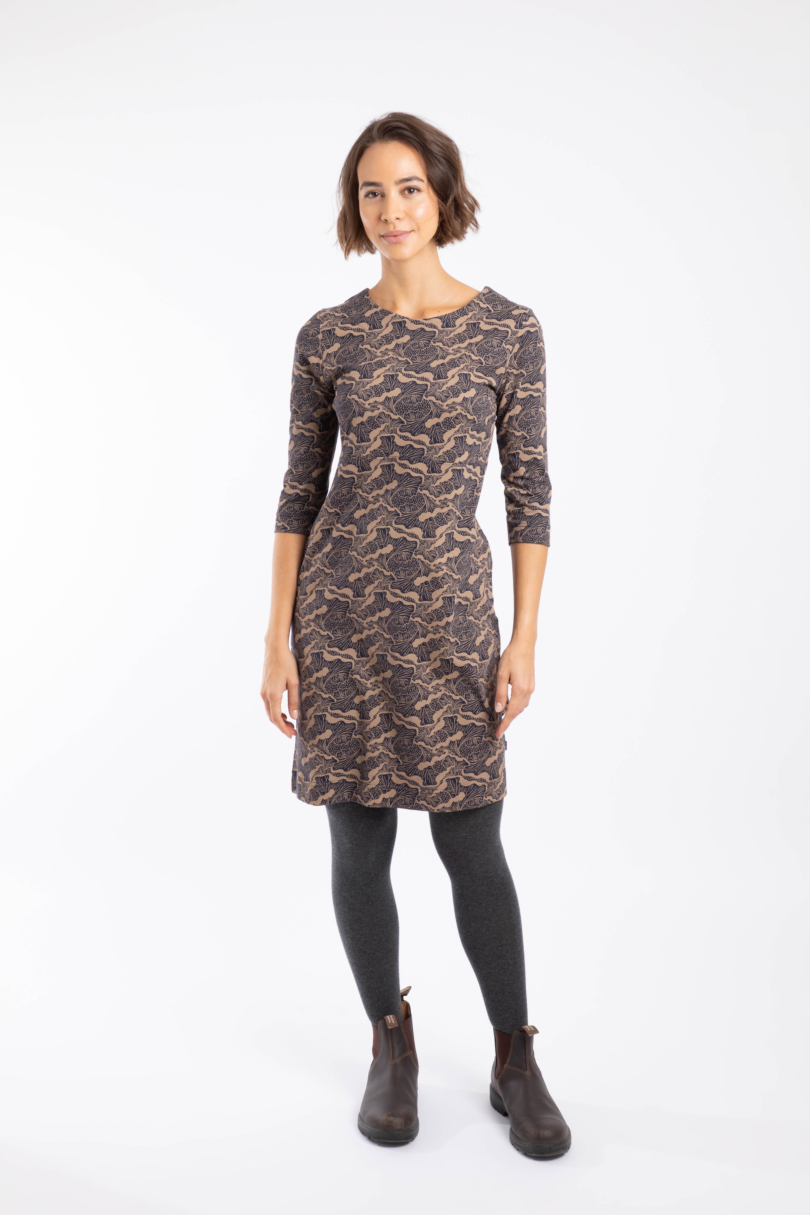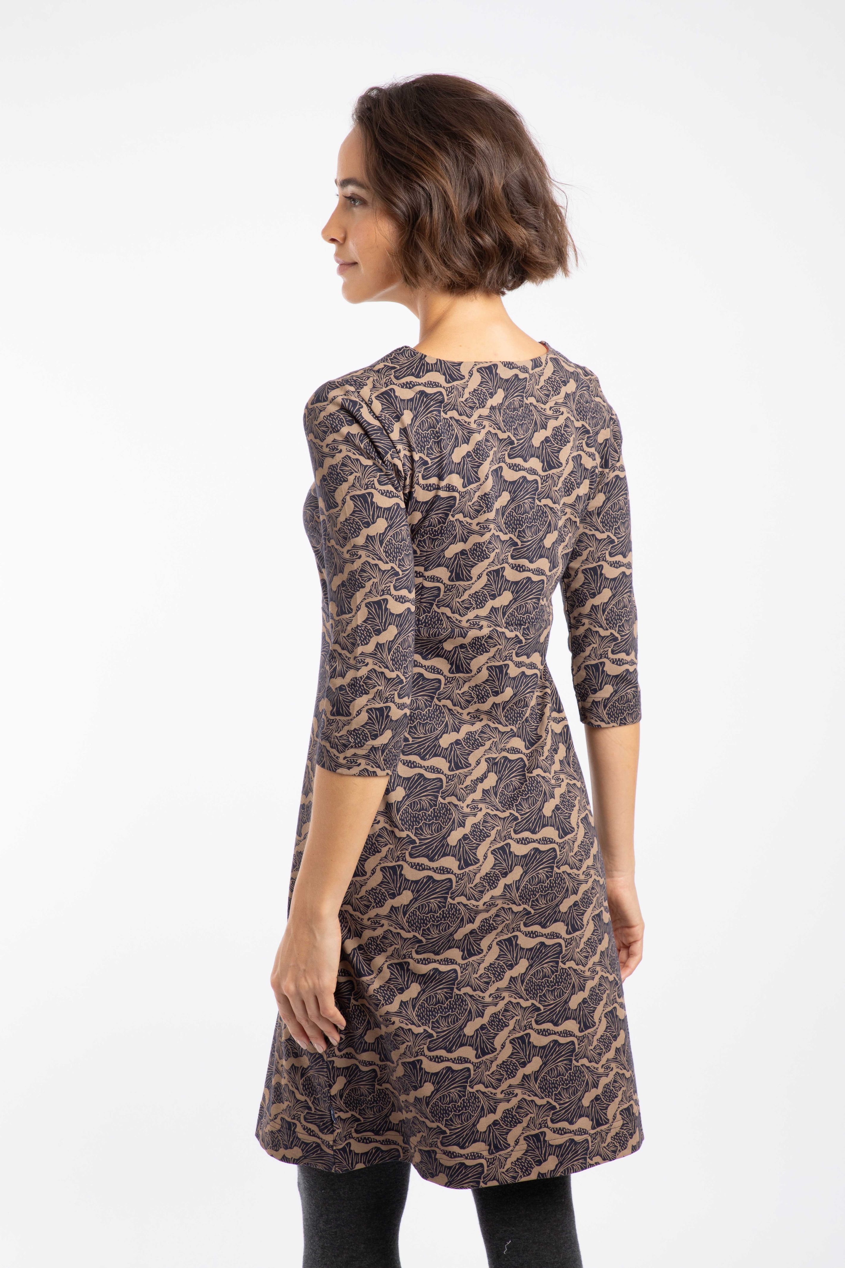 The Shafika Printed Jersey Dress is the easiest outfit you will ever wear. This cotton dress has no fastenings and a little stretch, so you can just pull on and go, for a simple but beautiful outfit. The 3/4 sleeves make it a great choice for more transitional weather, and you can layer it up with tights and a cardigan for cooler weather.