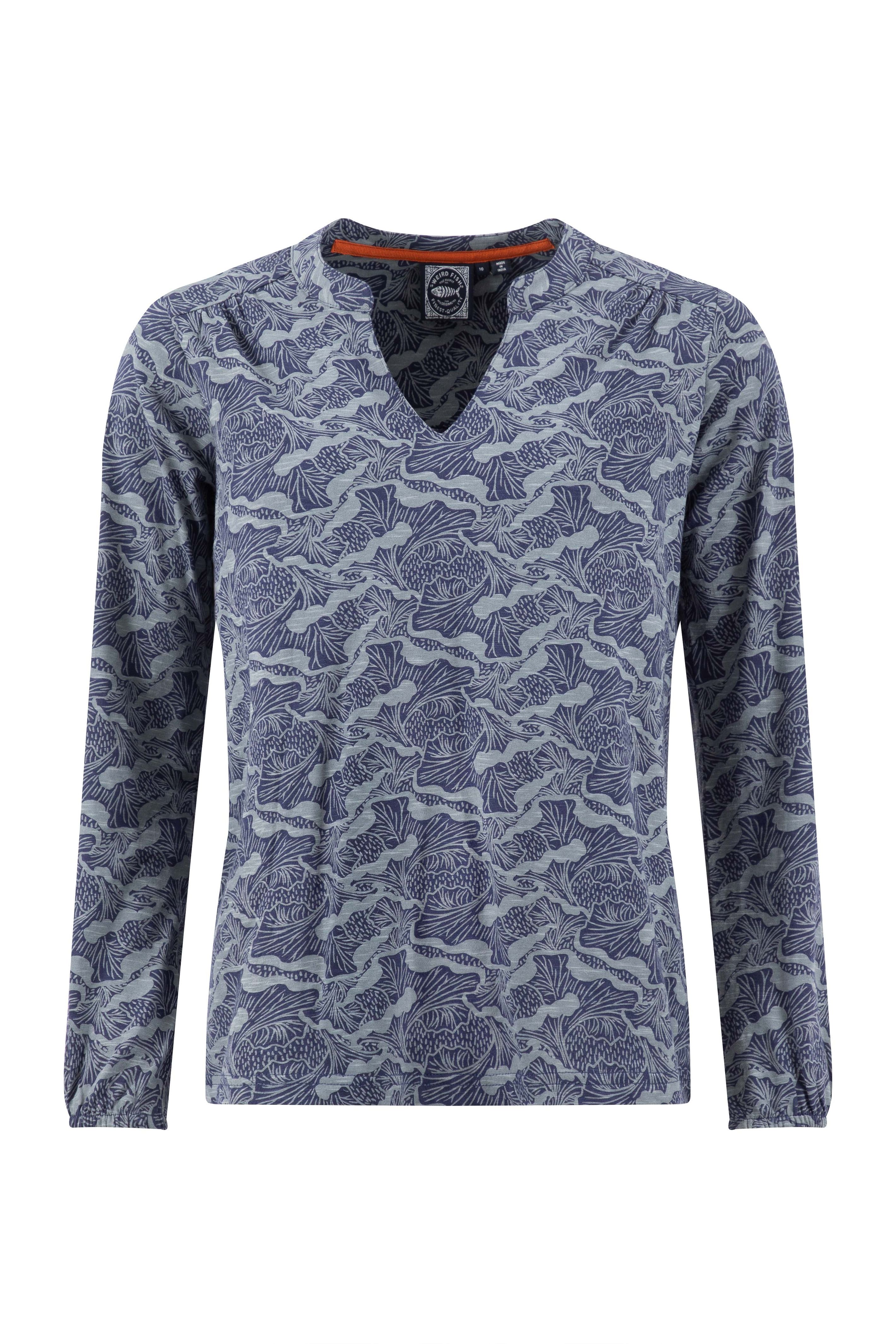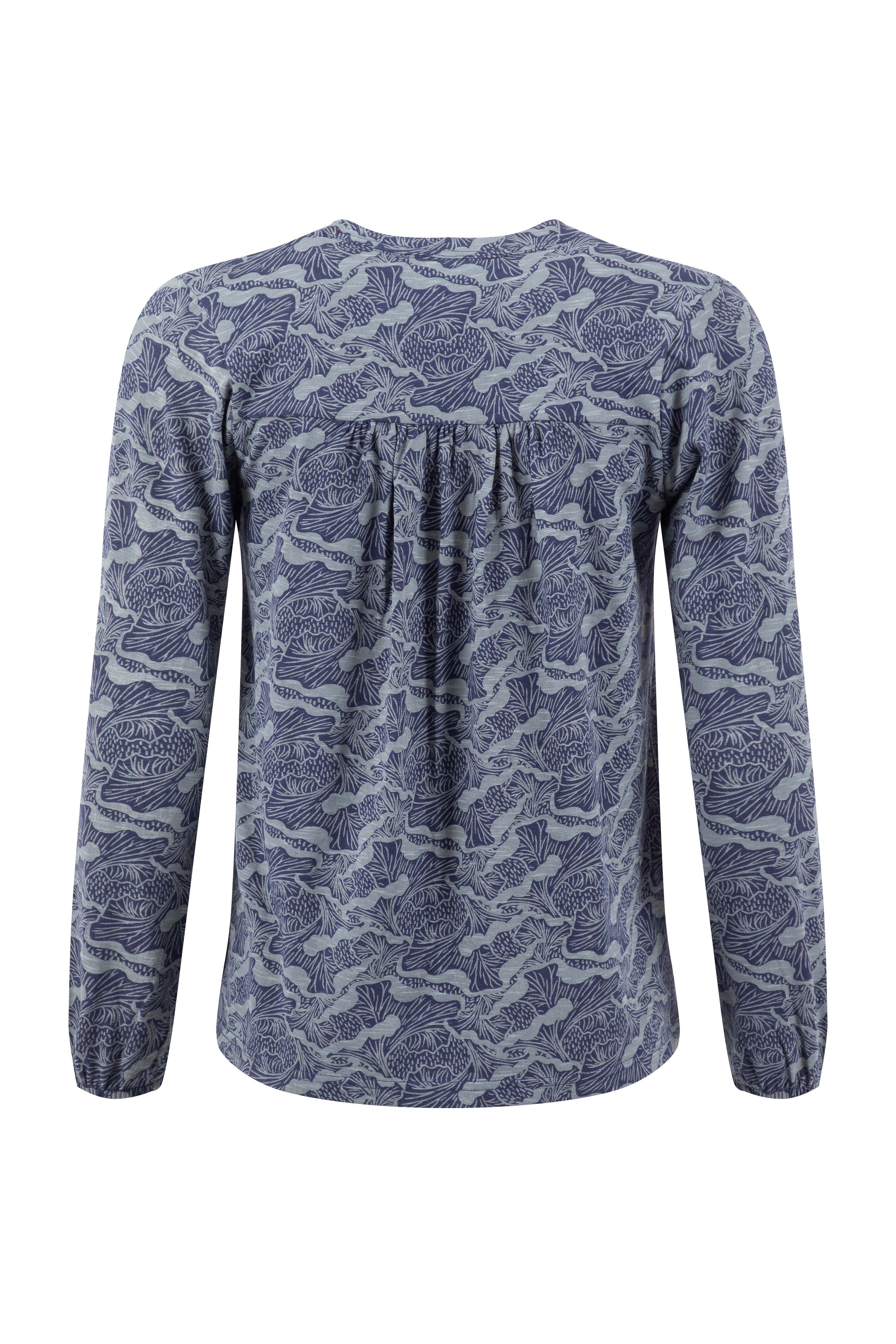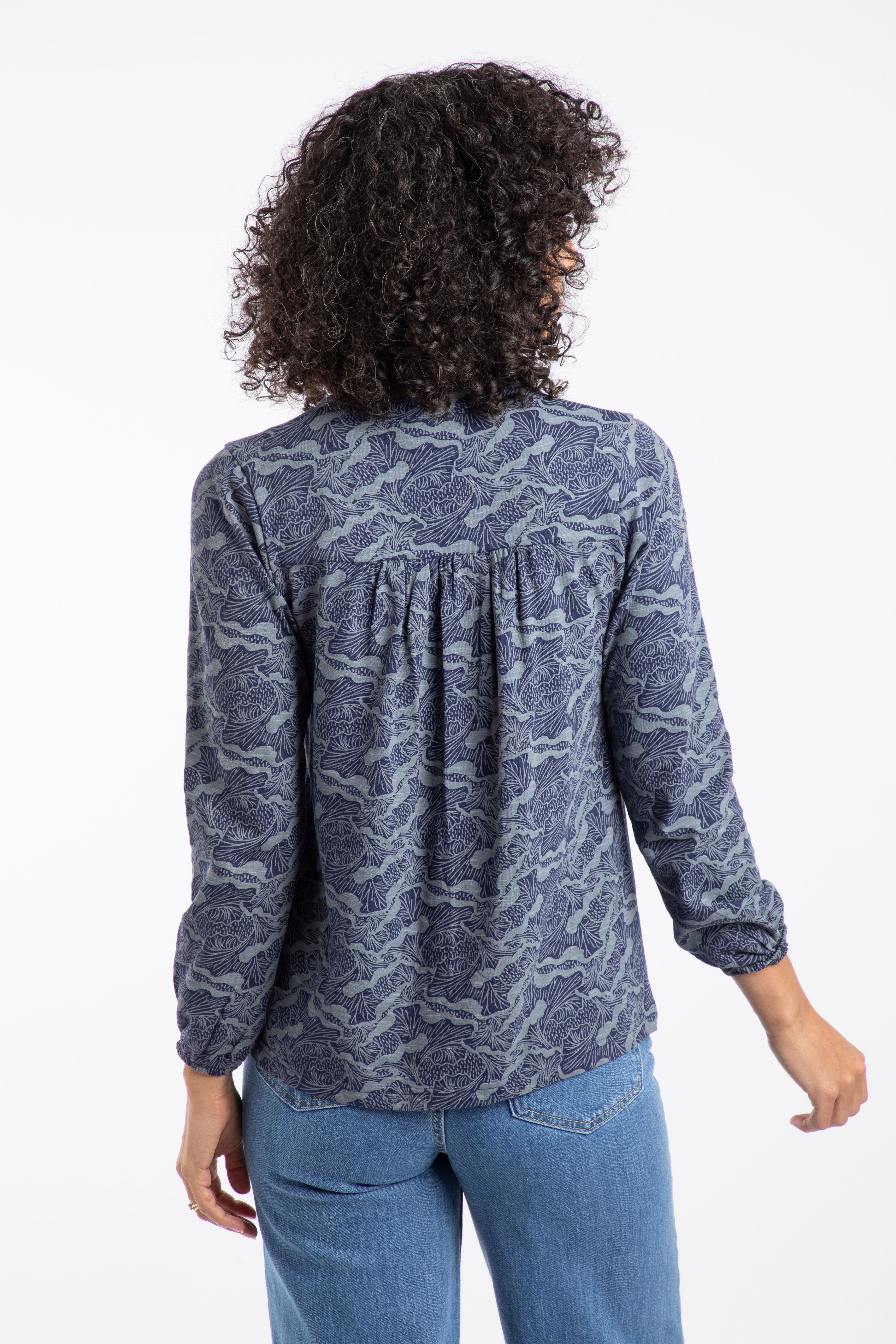 The Brooke,printed jersey top has all the comfort of a T-Shirt with the styling of a blouse. It has a slub texture for a casual feel, but the notched neck and bloused sleeves give this comfy top a smart edge. It looks great styled with our Malorri cargo trousers, or a great pair of jeans.