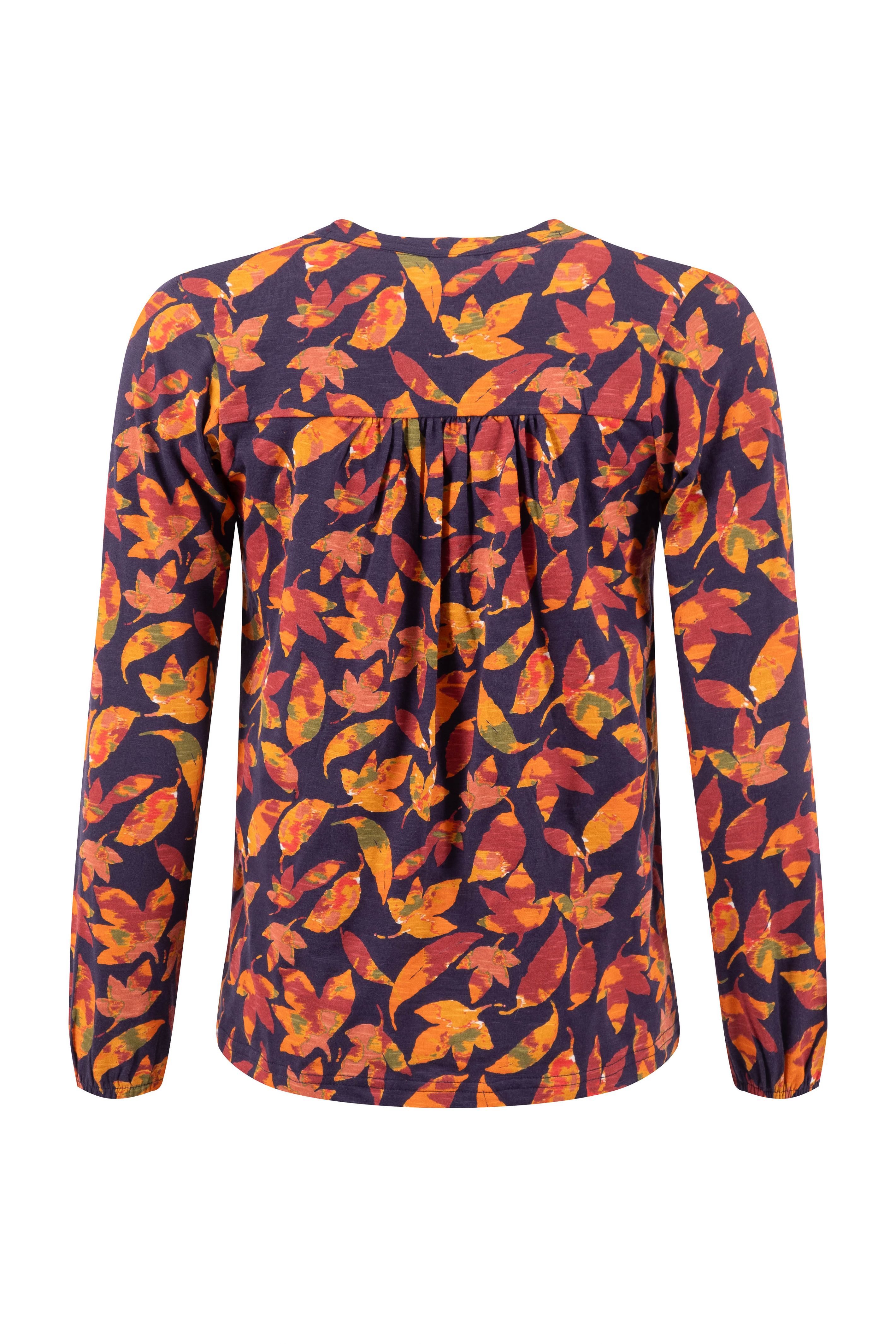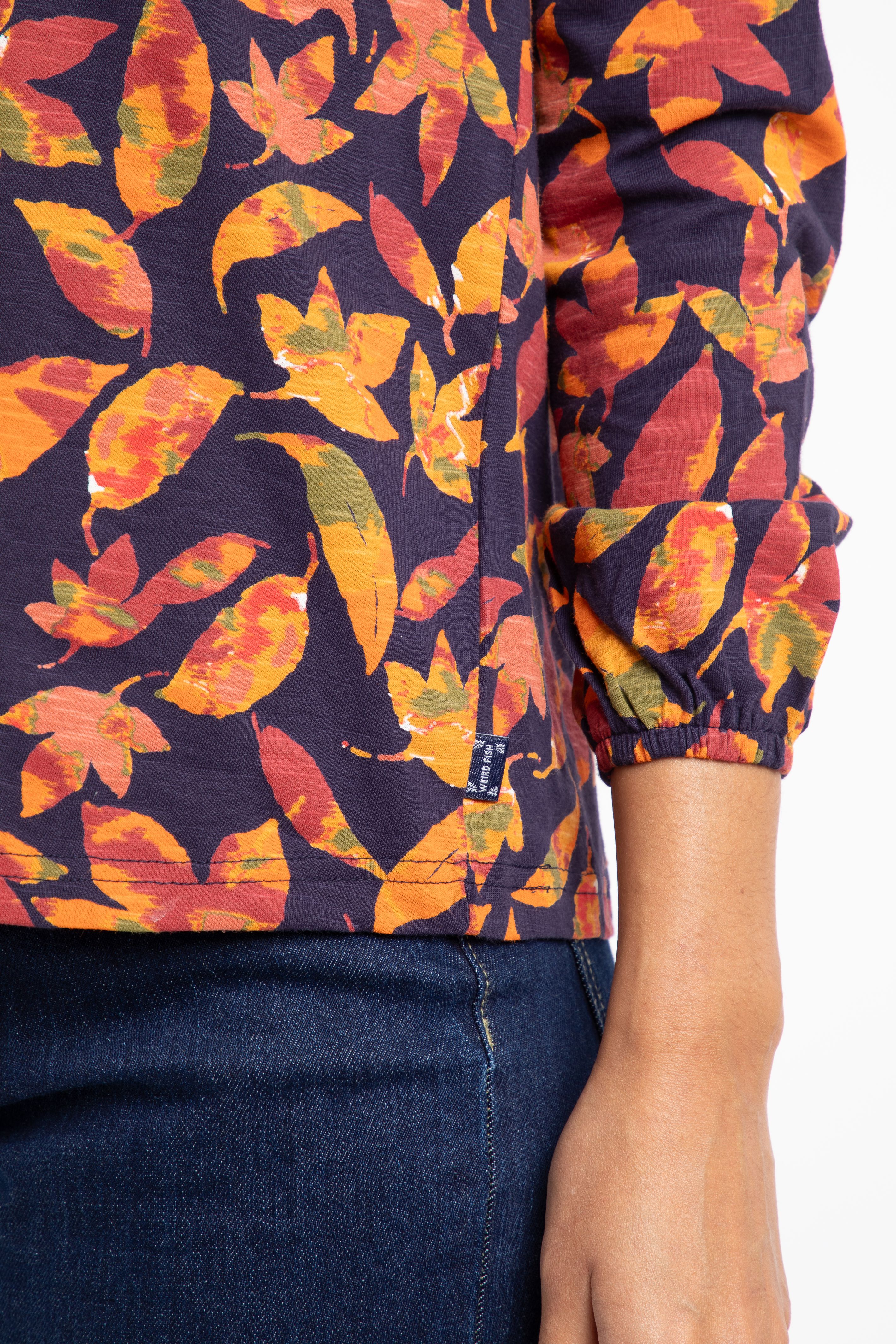 The Brooke,printed jersey top has all the comfort of a T-Shirt with the styling of a blouse. It has a slub texture for a casual feel, but the notched neck and bloused sleeves give this comfy top a smart edge. It looks great styled with our Malorri cargo trousers, or a great pair of jeans.