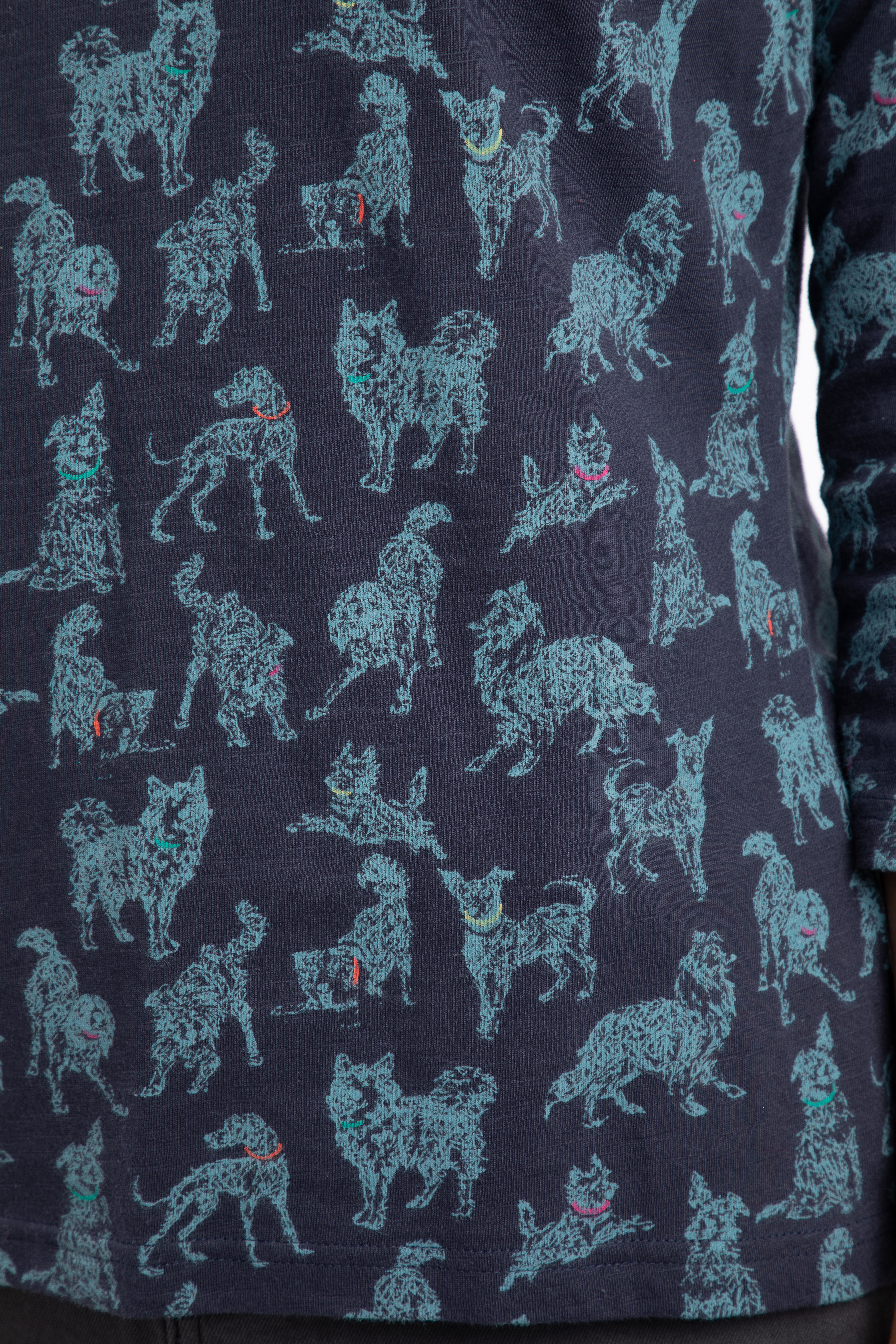 Laveda 3/4 Sleeve Printed V Neck T-Shirt Dark Navy