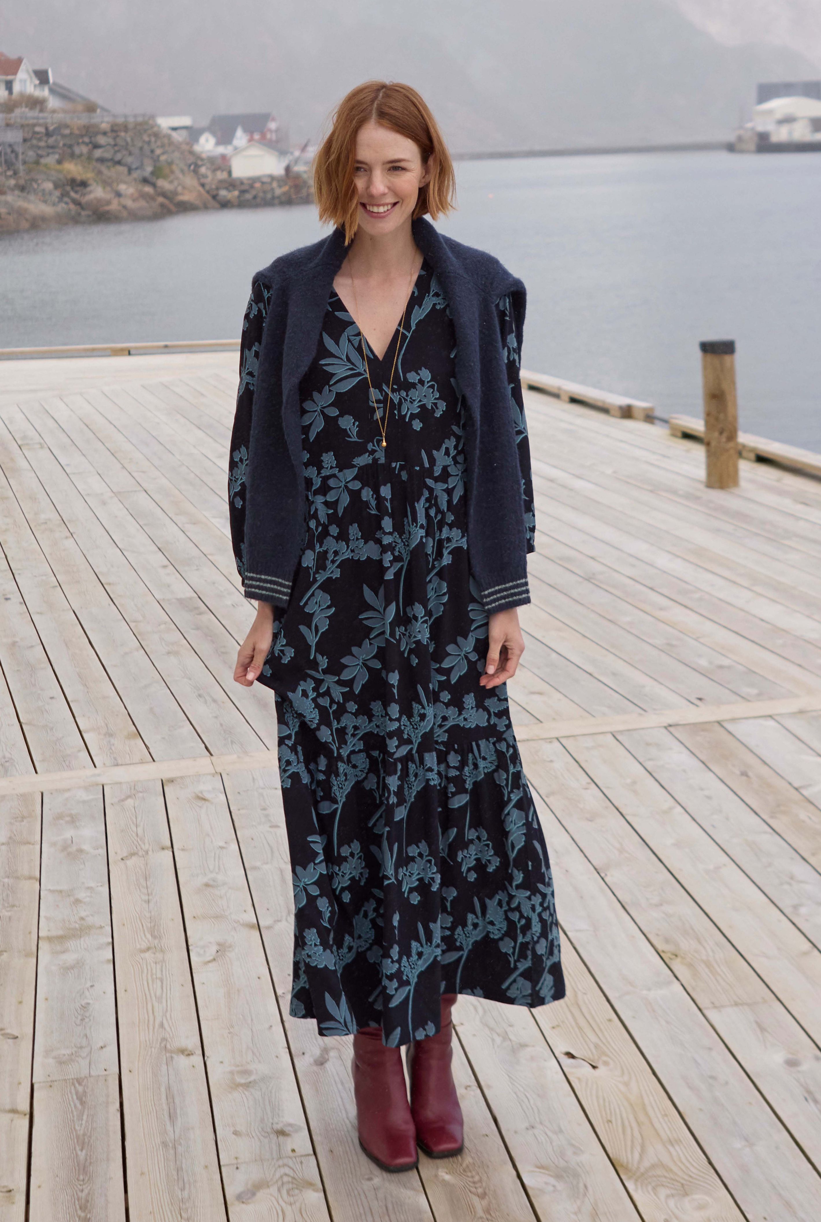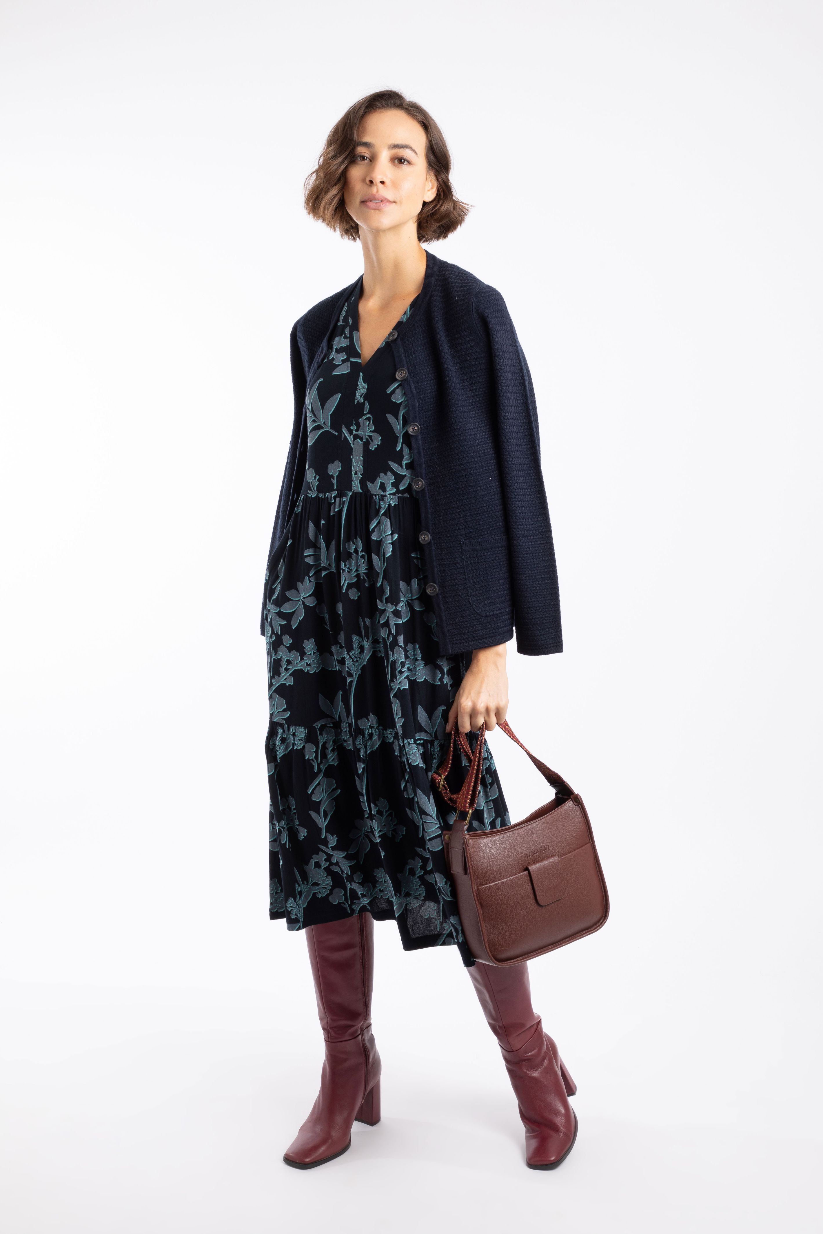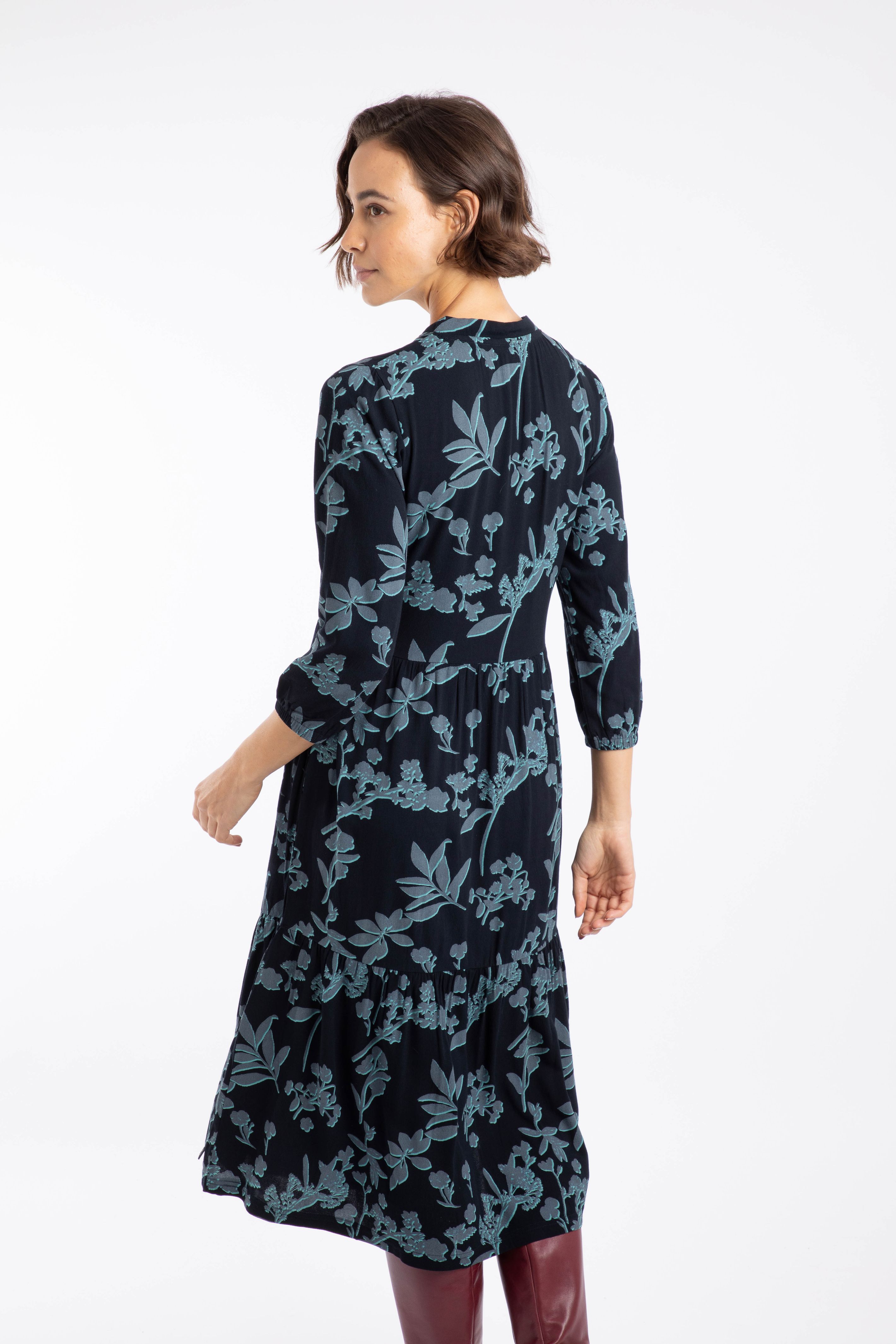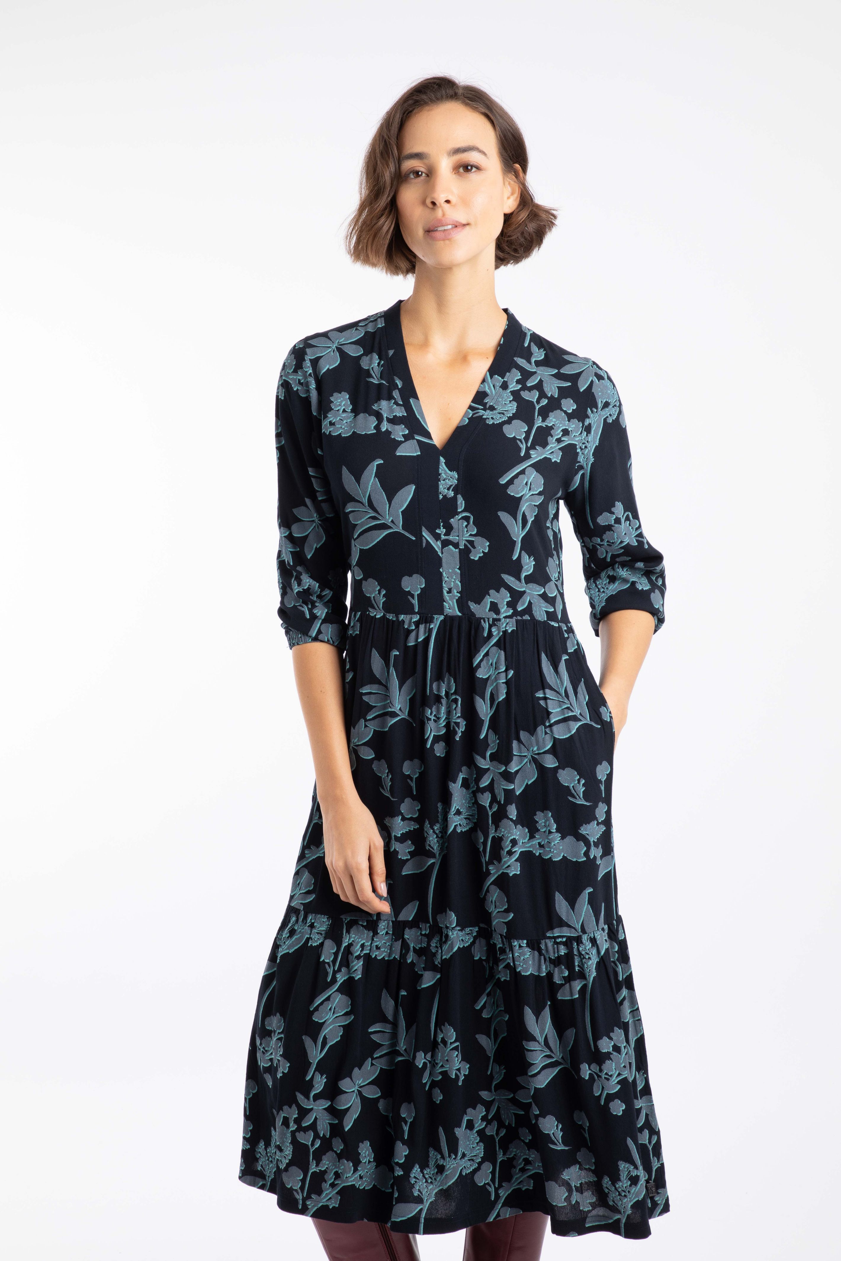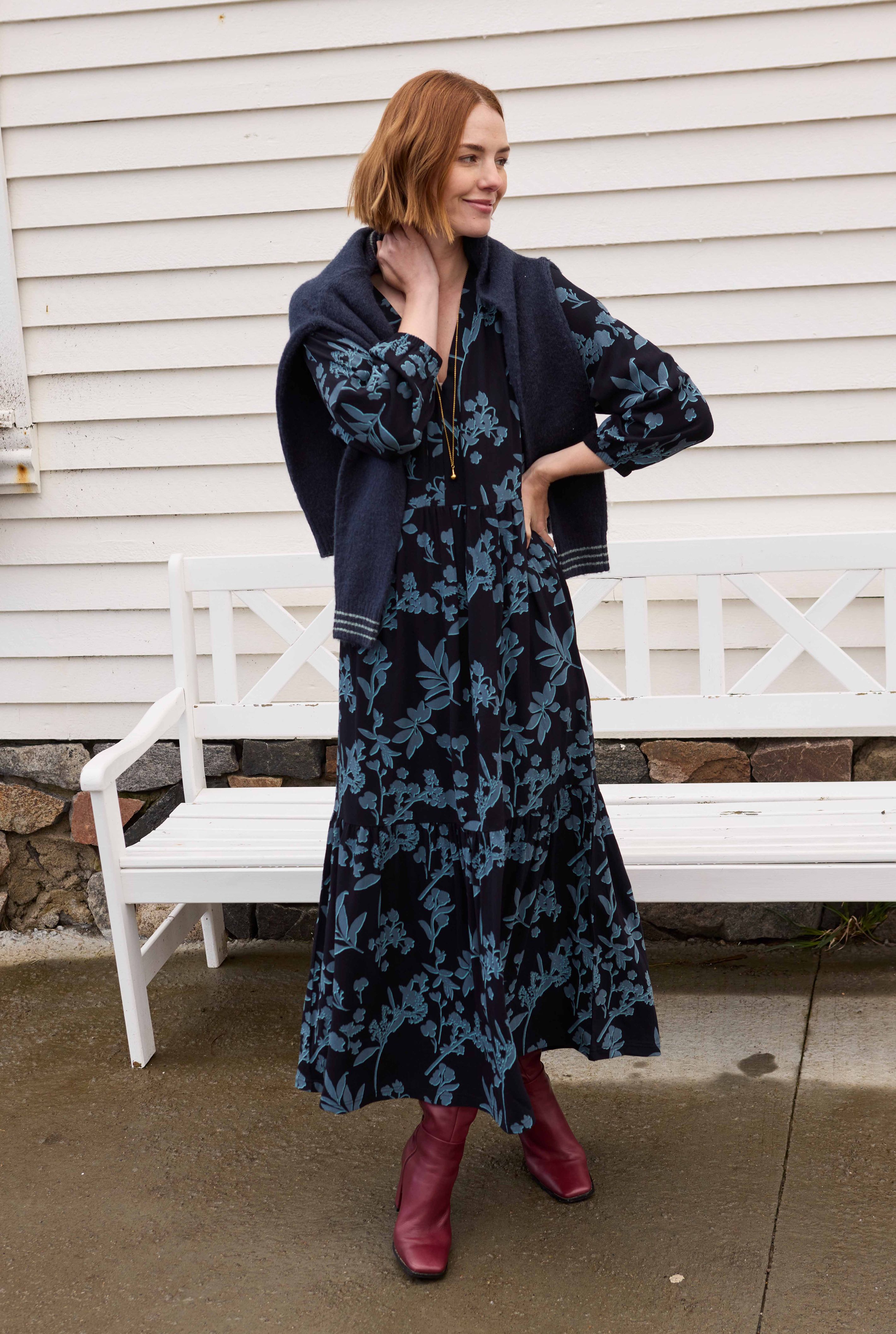 Fun and flirty, the Gardot Printed Midi Dress has a relaxed, swing shape so it moves beautifully. The blouse sleeves have an elasticated cuff to give them shape. The skirt is tiered to give even more movement to this floaty midi dress. Plus, it has pockets!