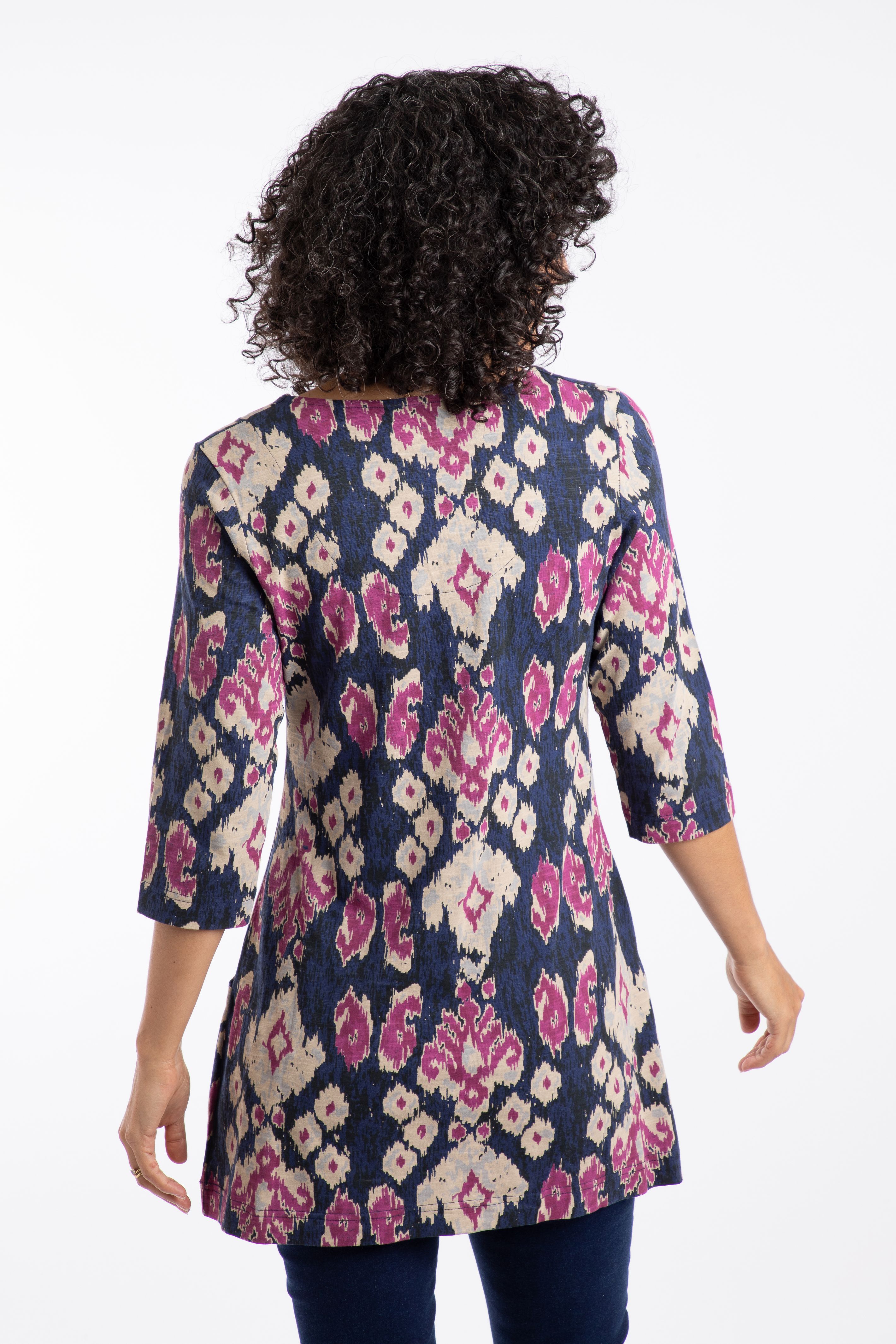 Arielle Printed Jersey 3/4 Sleeve Tunic Petrol Blue